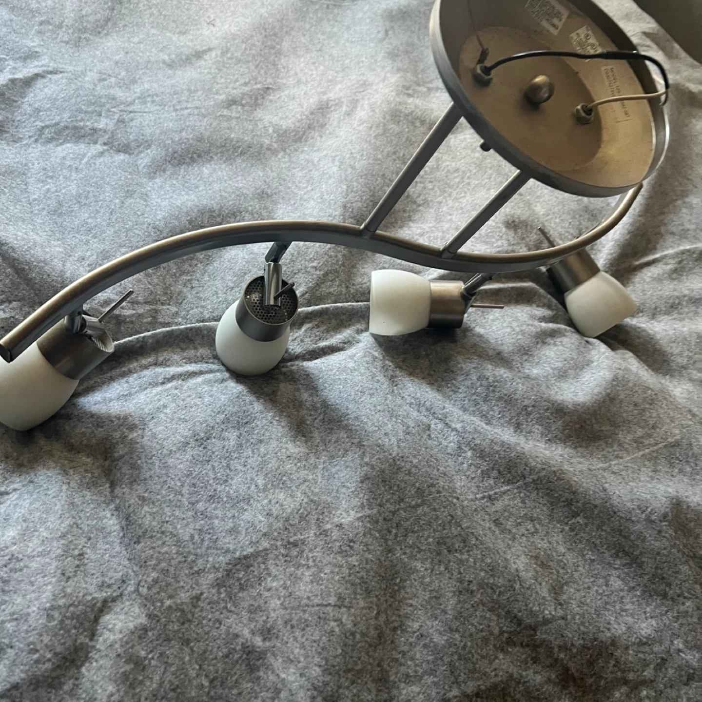 This is a three-head track light fixture. It's designed for dry locations only. The fixture has adjustable heads to direct light where you need it.