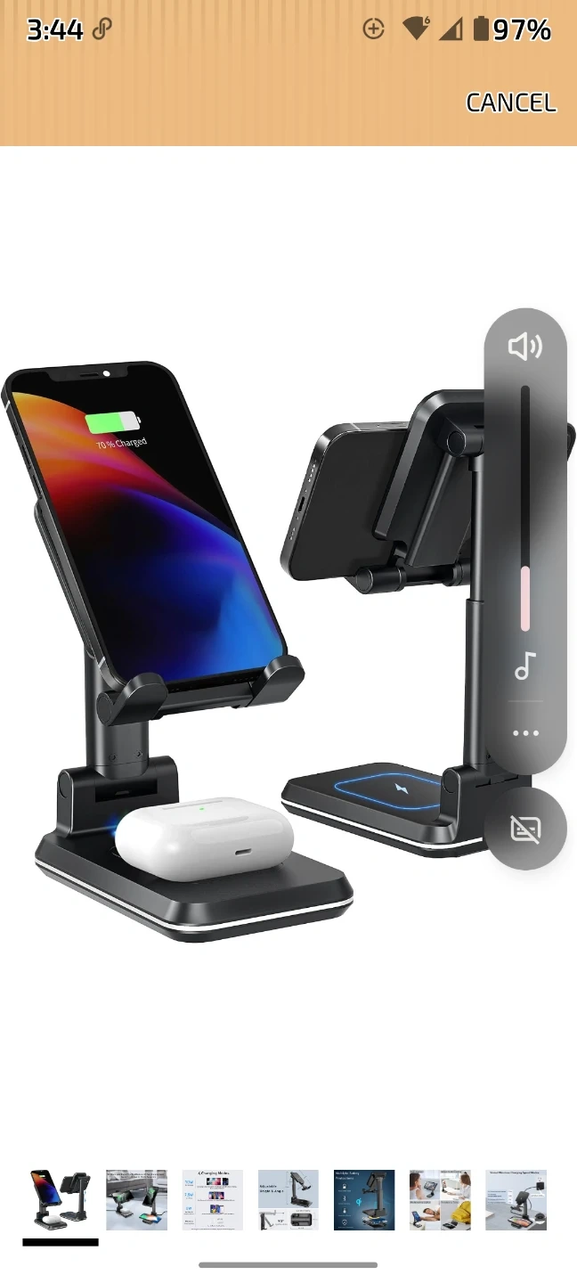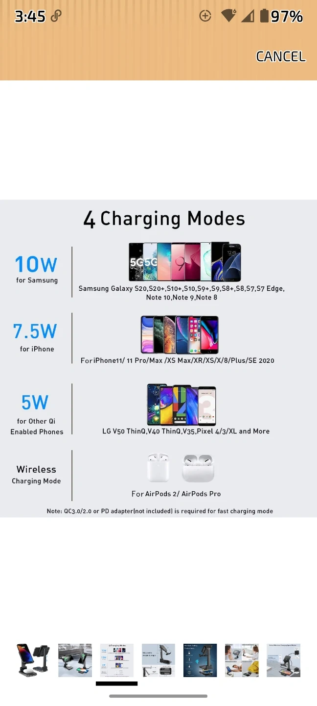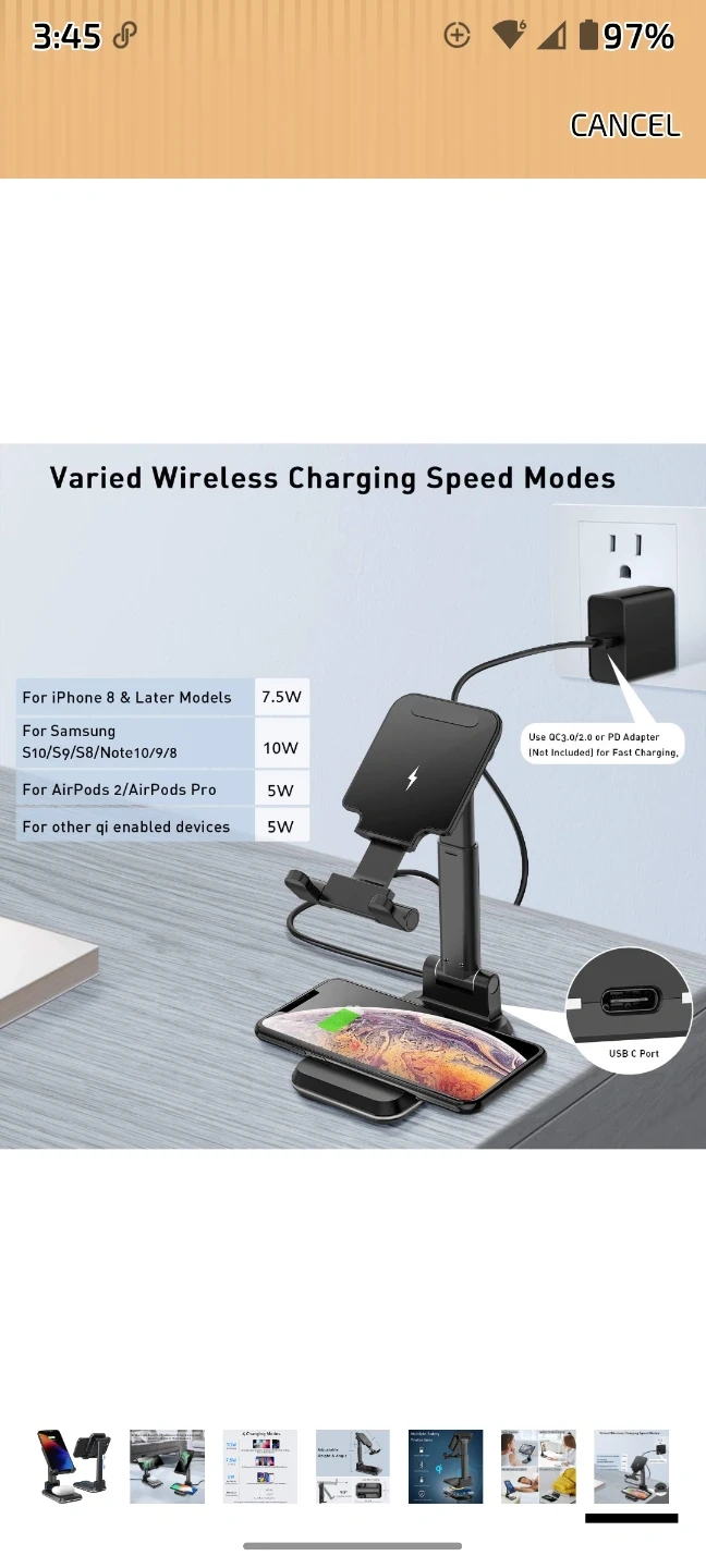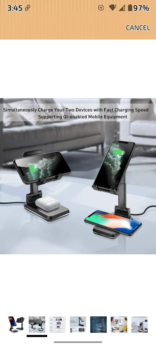 Charges two Qi-enabled devices simultaneously. Offers varied wireless charging speed modes up to 10W for Samsung devices and 7.5W for iPhones. It's portable and has no annoying charging lights. This stand is useful for keeping multiple devices powered up at once.