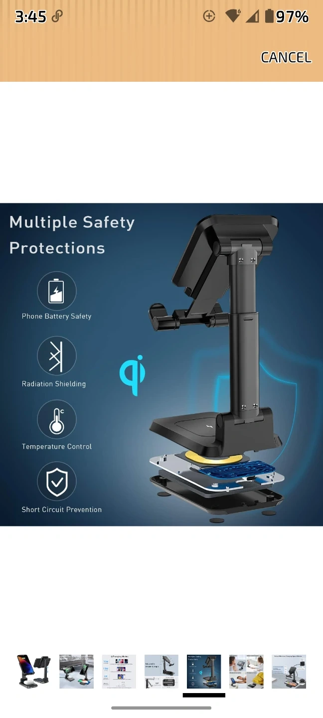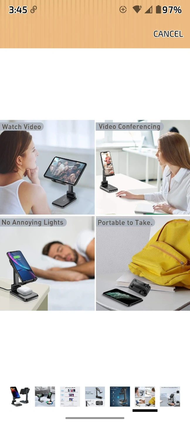 Charges two Qi-enabled devices simultaneously. Offers varied wireless charging speed modes up to 10W for Samsung devices and 7.5W for iPhones. It's portable and has no annoying charging lights. This stand is useful for keeping multiple devices powered up at once.