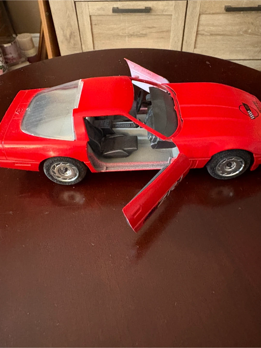 Majorette diecast model of a red Chevrolet Corvette ZR-1. Features opening doors and detailed interior. Made in France. Just rear window