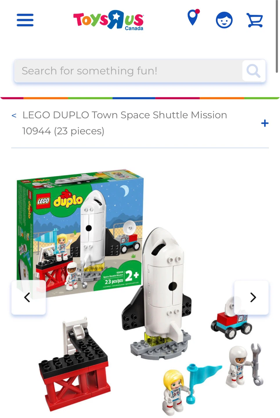 This LEGO DUPLO set features a space shuttle and mission control. It's designed for ages 2+ and includes 23 pieces. Building instructions are included.