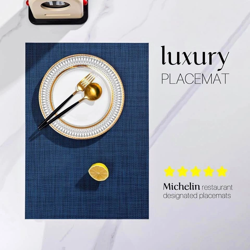 Brand new set of 8 Lexmore Paris vinyl woven placemats in navy blue. Enhance your dining table with these stylish and durable placemats.