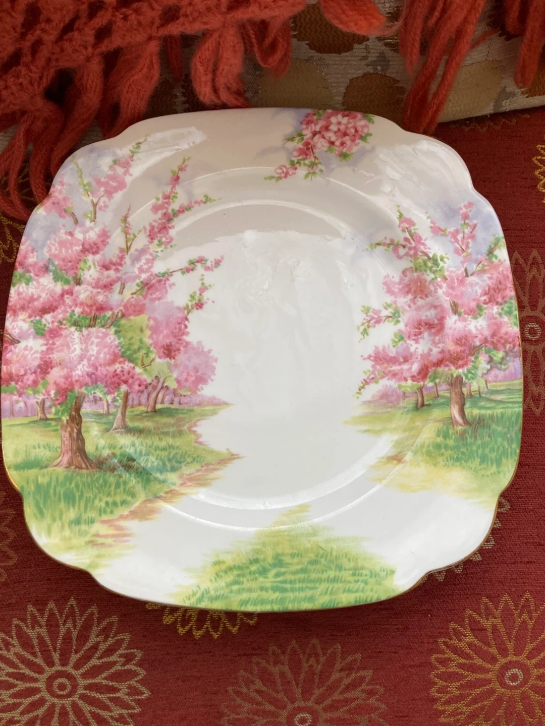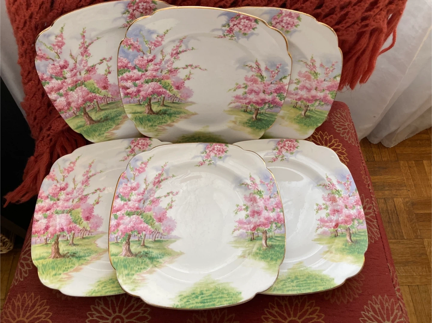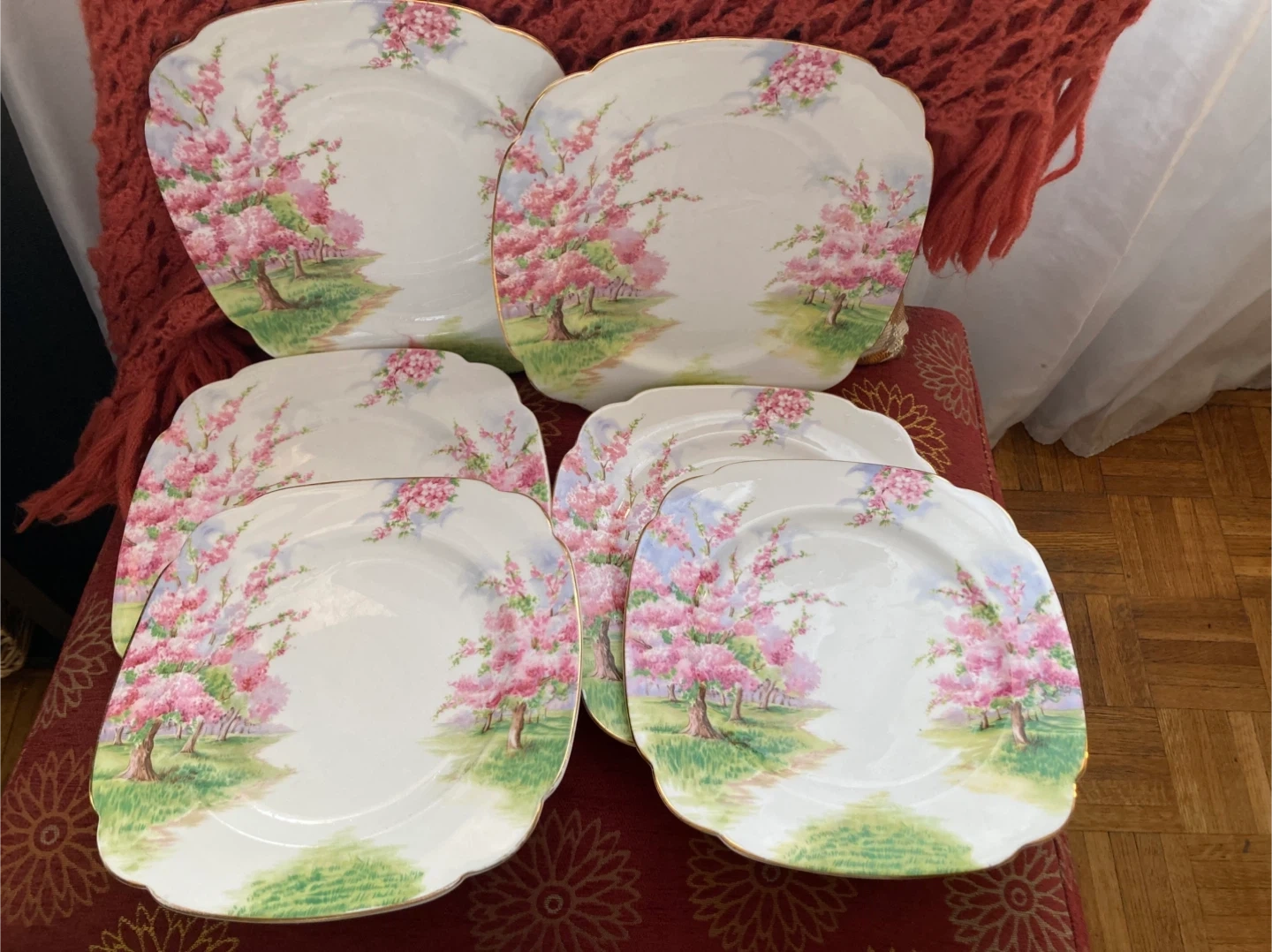 Vintage Cherry Blossom Square Plates Set