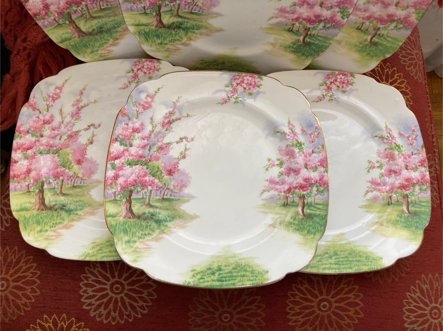 Vintage Cherry Blossom Square Plates Set