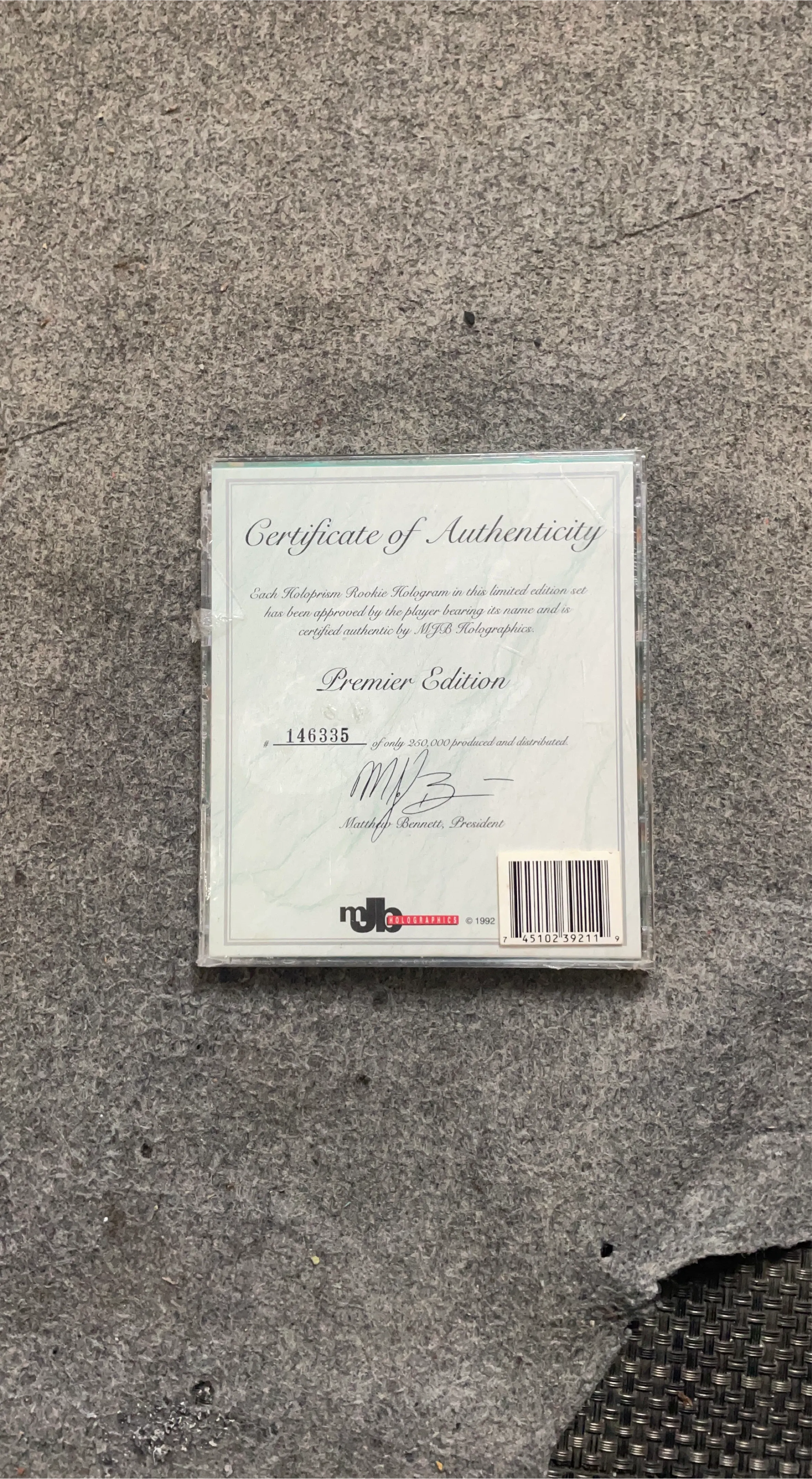 This is a Premier Edition Holoprism Rookie Hologram from MJB Holographics. It's part of a limited set, with only 250,000 produced and distributed. Each hologram is certified authentic.