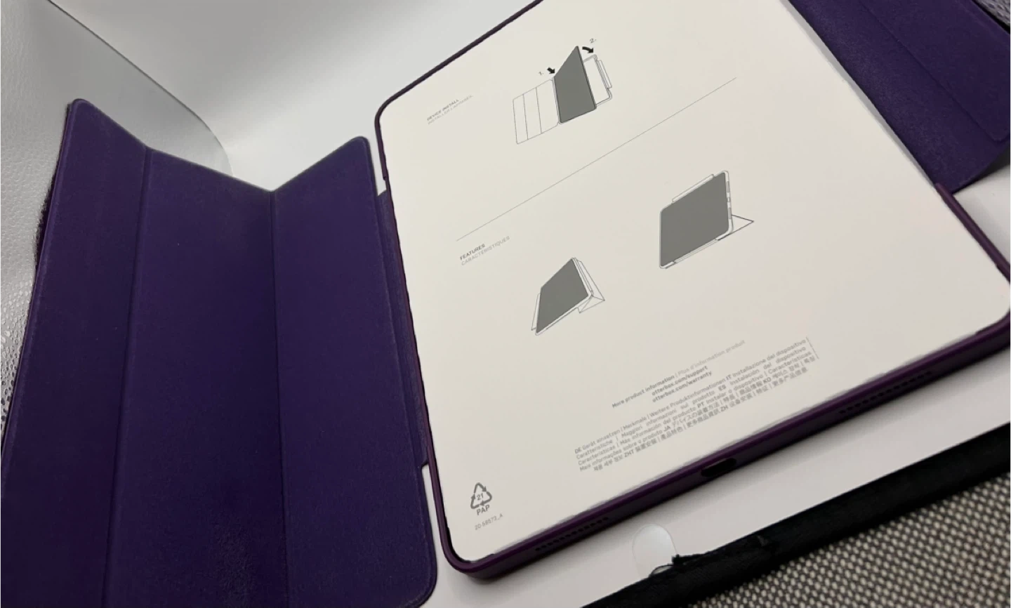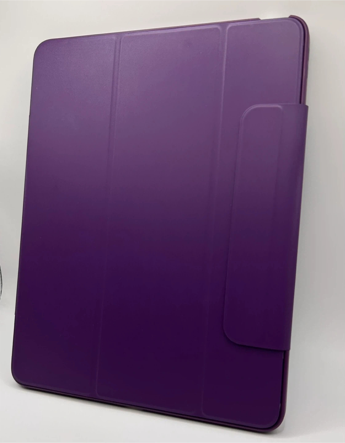 This is an OtterBox Symmetry 360 Series case designed for an iPad. It offers a protective folio cover and a clear back. The case is a vibrant purple colour.