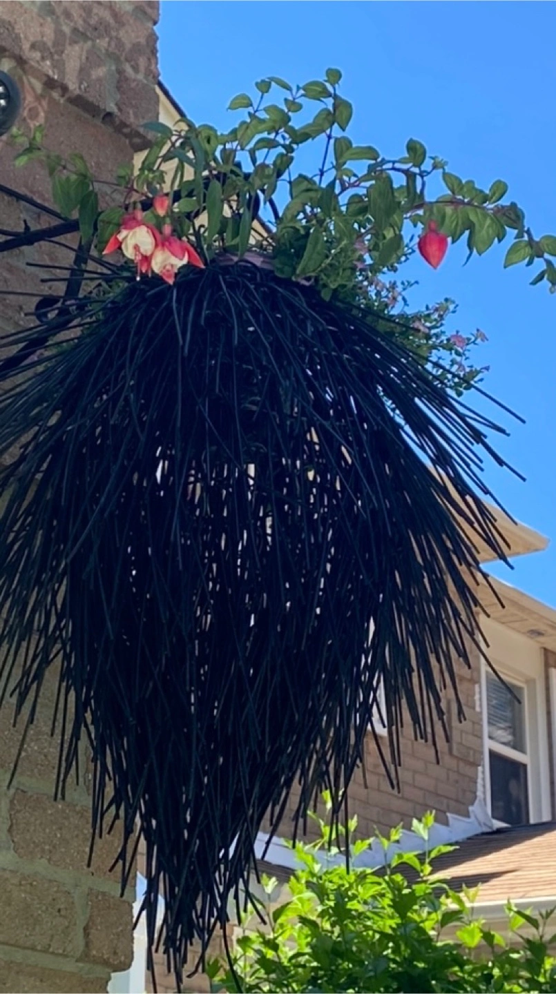 2 Black wicker planters with an interesting design. Can be hung outdoors with existing bracket. Placing your favourite plants in this planter can make any space more inviting. Plants not included .