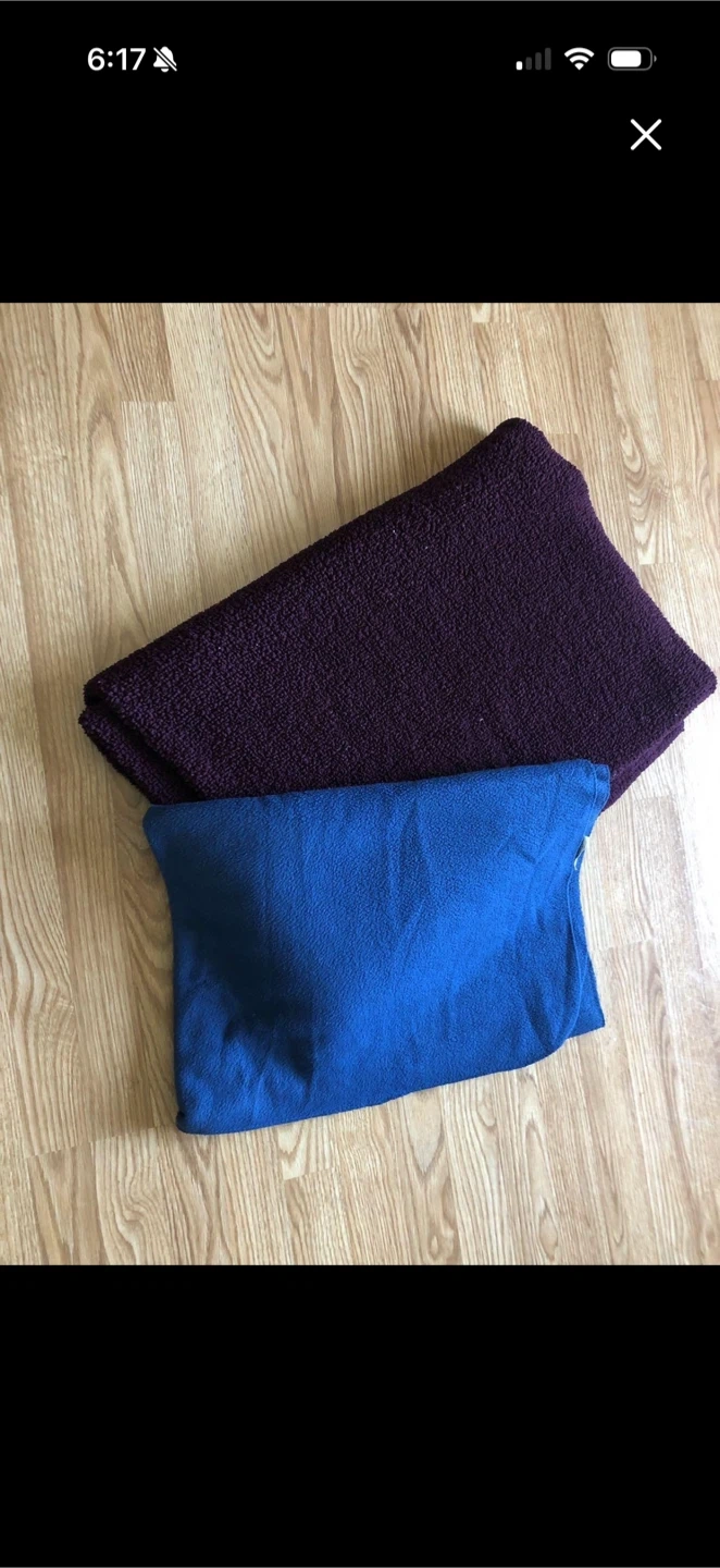 Two soft fleece blankets are included. One is a deep purple and the other is bright blue. They're great for keeping cozy on cooler evenings.