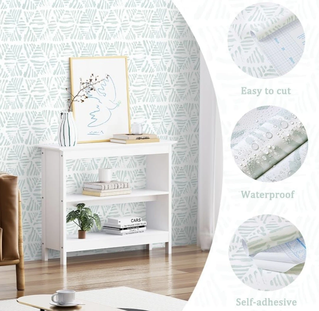 Modern Geometric Wallpaper. New. 17.3" x 78.7". Green and White, Self Adhesive, Removable. Perfect for updating your furniture or walls.