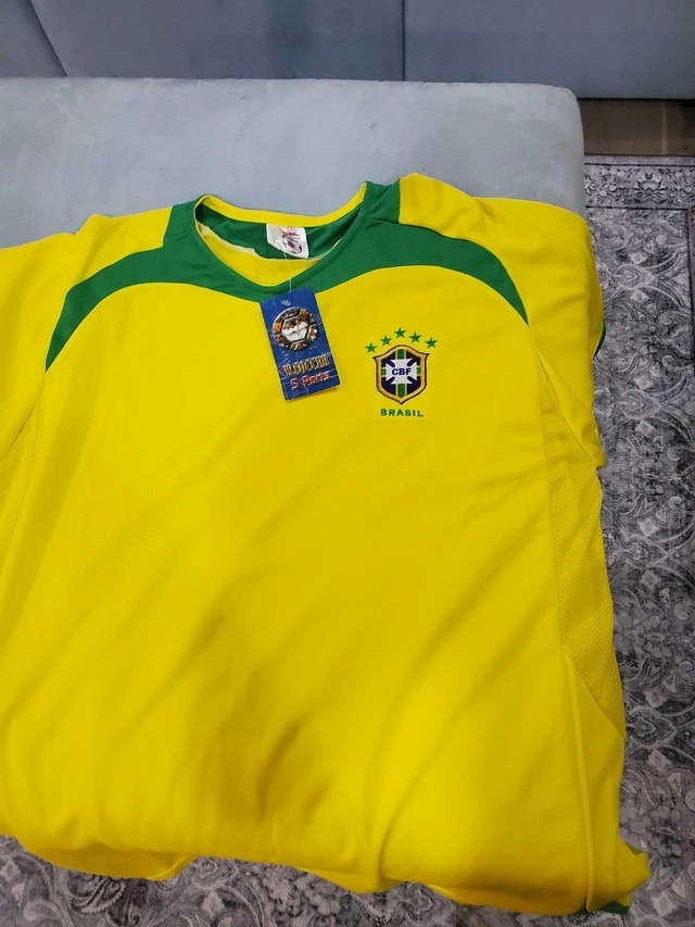 Get ready to show your support with this brand new Brazil soccer jersey! Featuring the iconic yellow and green colours, this jersey is perfect for any soccer fan. Classic Brazil design, high-quality material. Size XL available. Cash accepted.