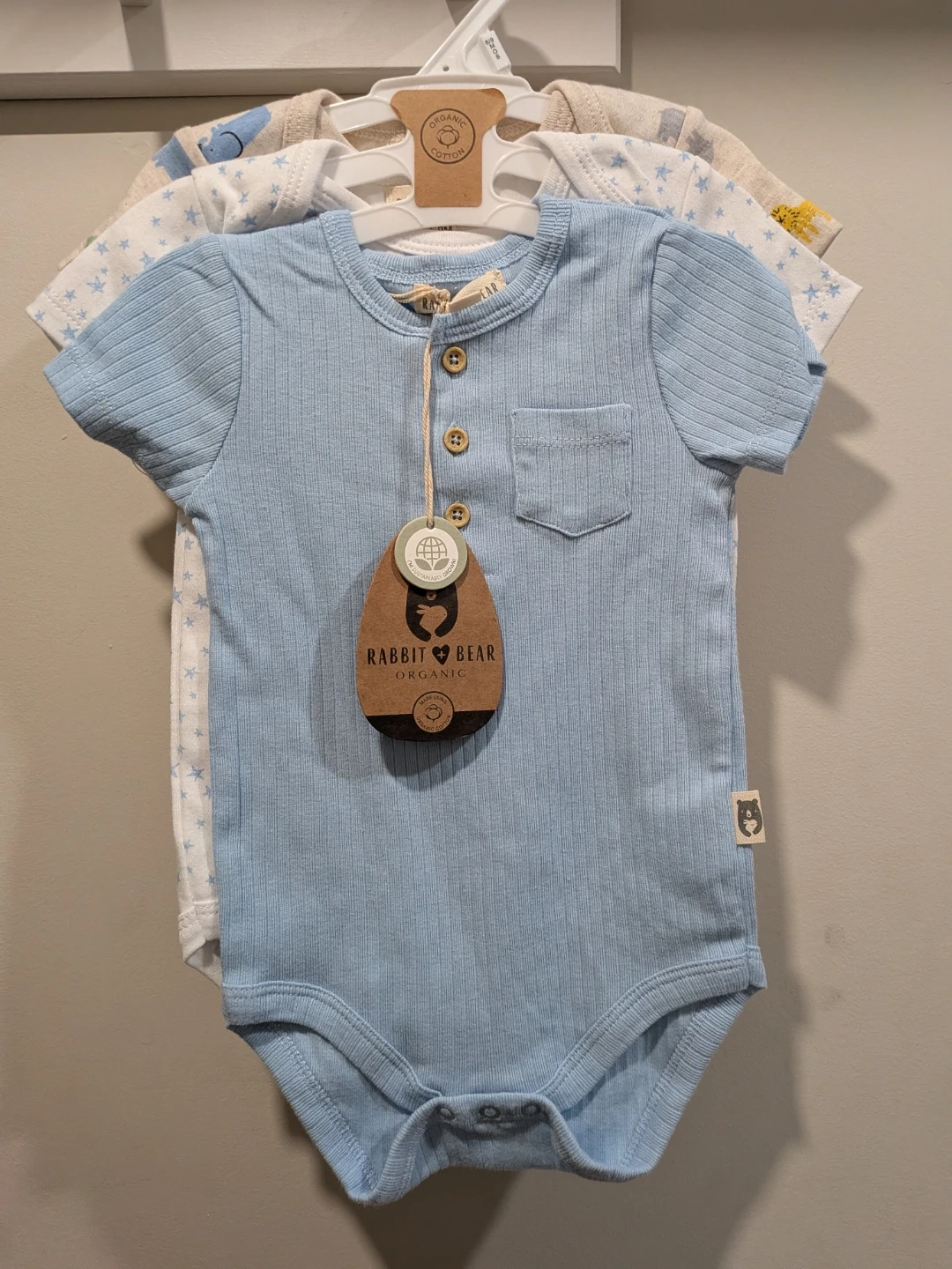 NEW 6-9 months Rabbit Bear Organic Baby Bodysuits (3-Pack)