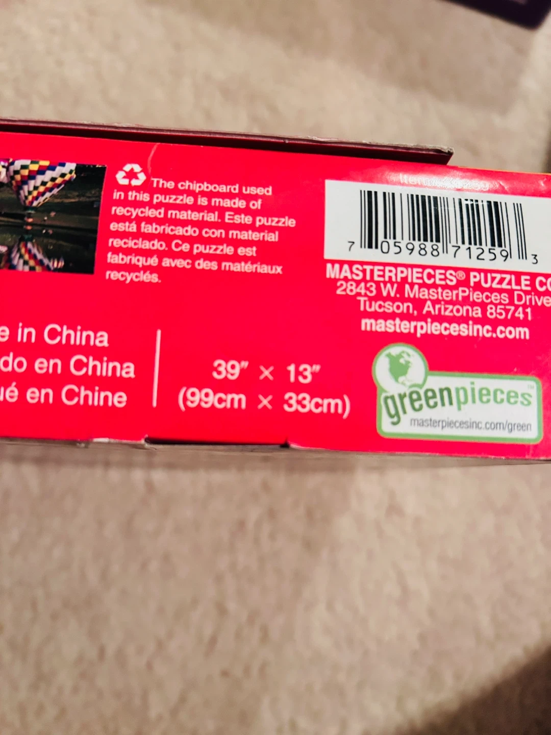 Masterpieces Panoramic puzzle featuring hot air balloons. It's 1000 pieces and measures 39" x 13" (99cm x 33cm).
