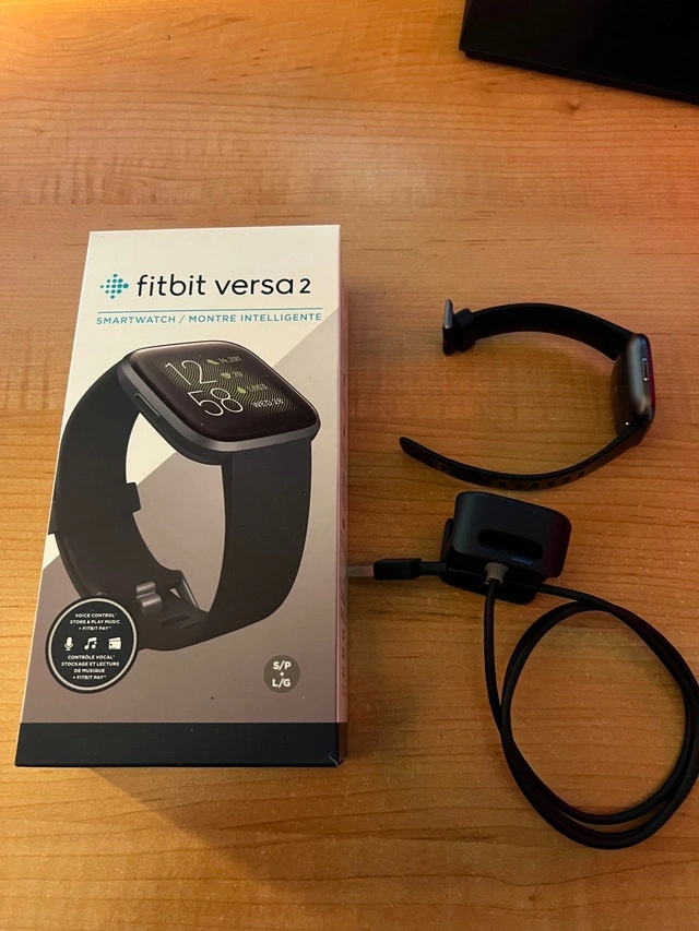 Selling my Fitbit Versa 2, purchased new on 11/30/2019. I've been using it daily but have upgraded to a newer watch. It comes with both small and large bands, the charger, and the original packing box. It comes from a smoke-free home. There are a few minor scratches on the screen, but they don't affect its performance or usability. The battery still lasts well over 5 days. Feel free to message if you have any questions!