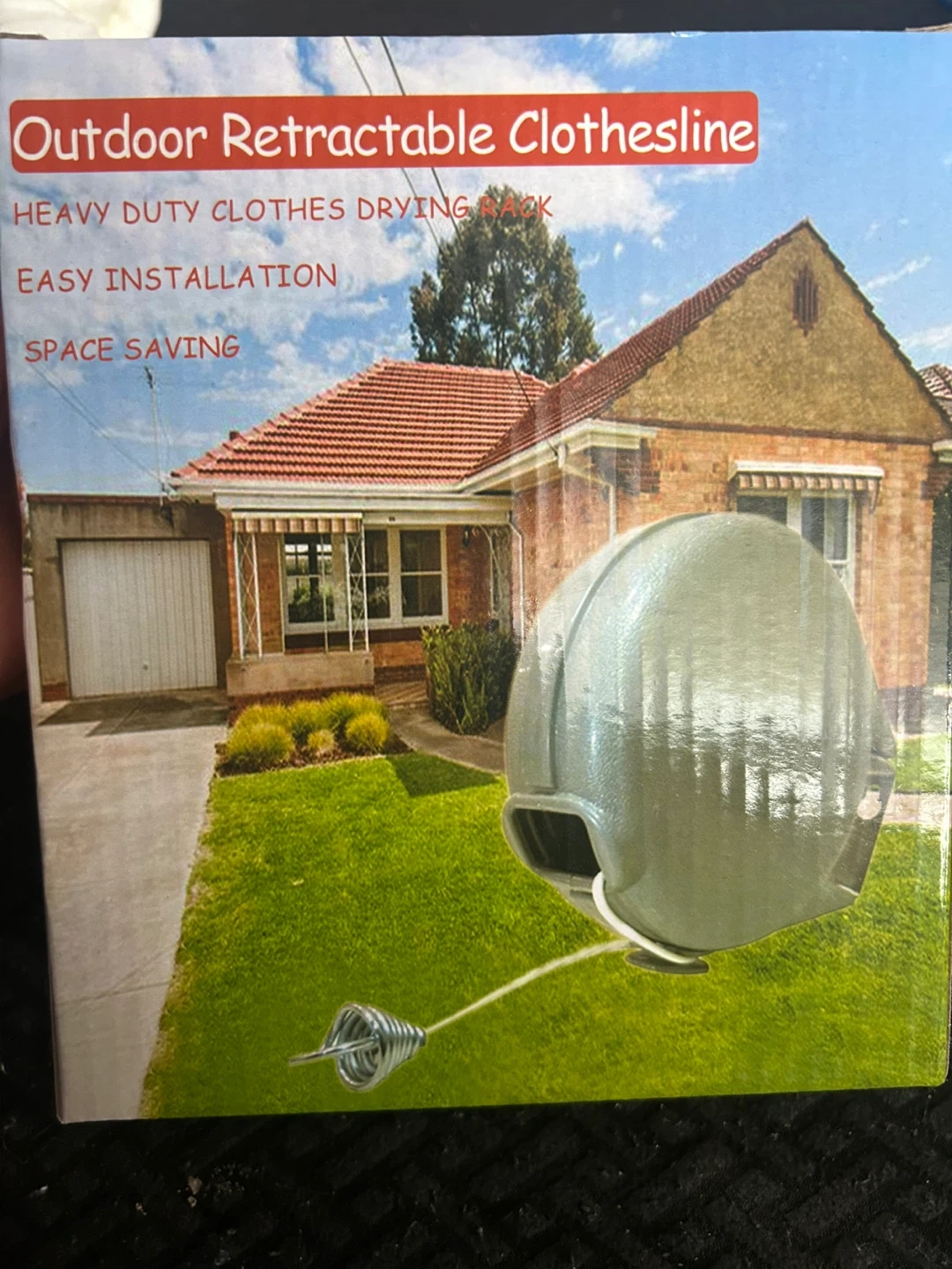 This is an outdoor retractable clothesline with a heavy-duty drying capacity. It features a single 12-metre retractable line with a sturdy ABS plastic shell. Includes a mounting bracket, masonry wall anchor, screws, and a line hook for easy installation. It's great for saving space in your yard!