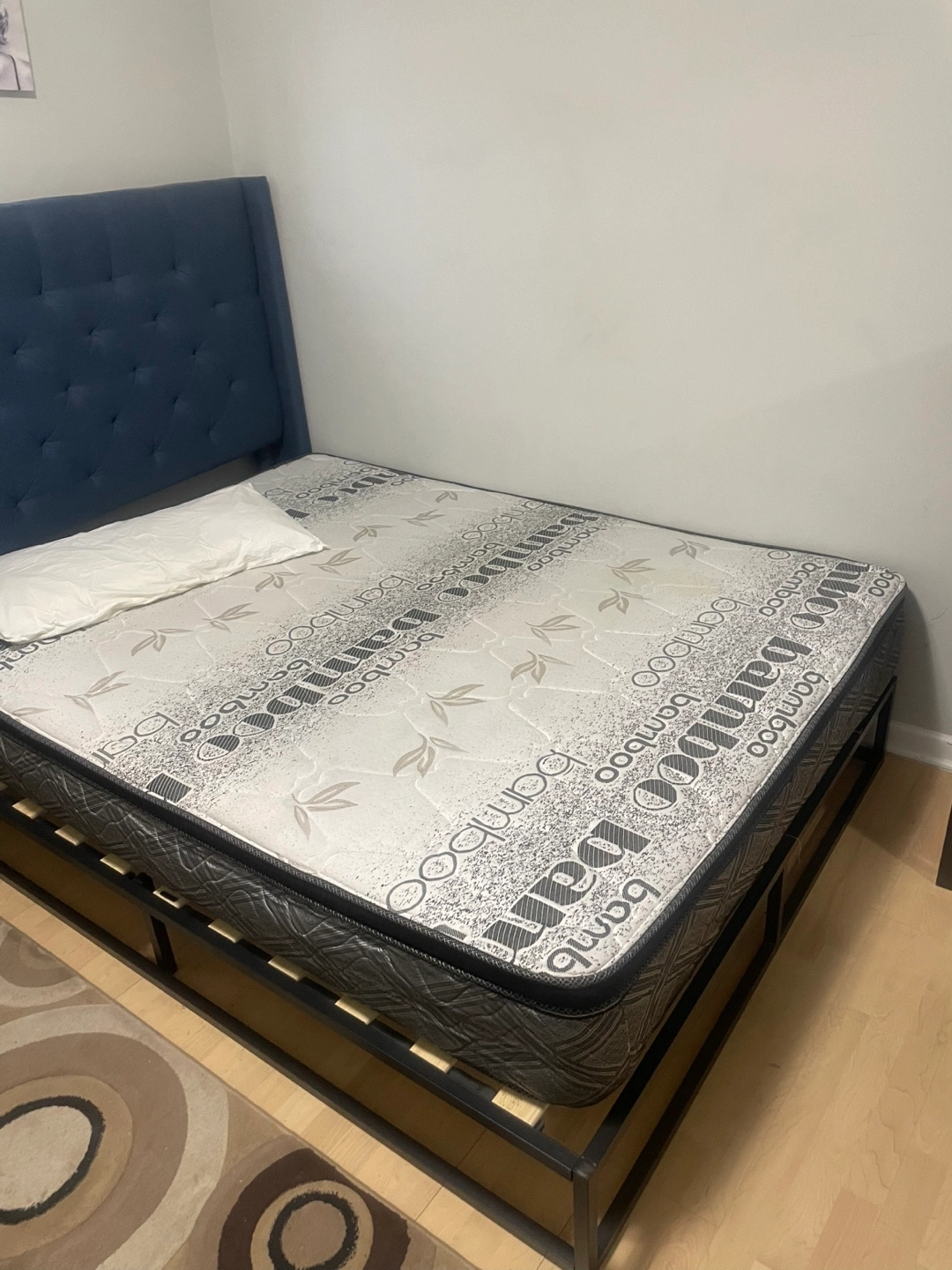 Double size bed frame with a mattress included. Comes with a headboard. Great condition.