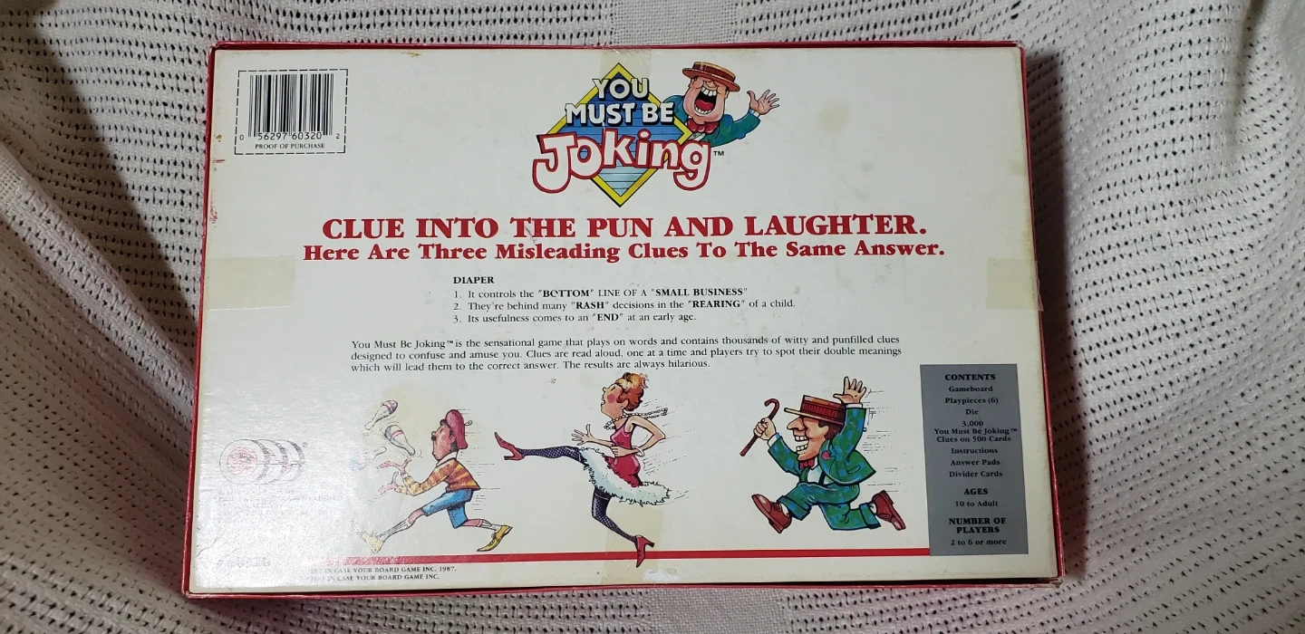 You Must Be Joking is the sensational game that plays on words and contains thousands of witty and pun filled cards designed to confuse and amuse you. Clues are read aloud and players try to spot their double meanings which will lead them to the correct answer. The results are always hilarious.