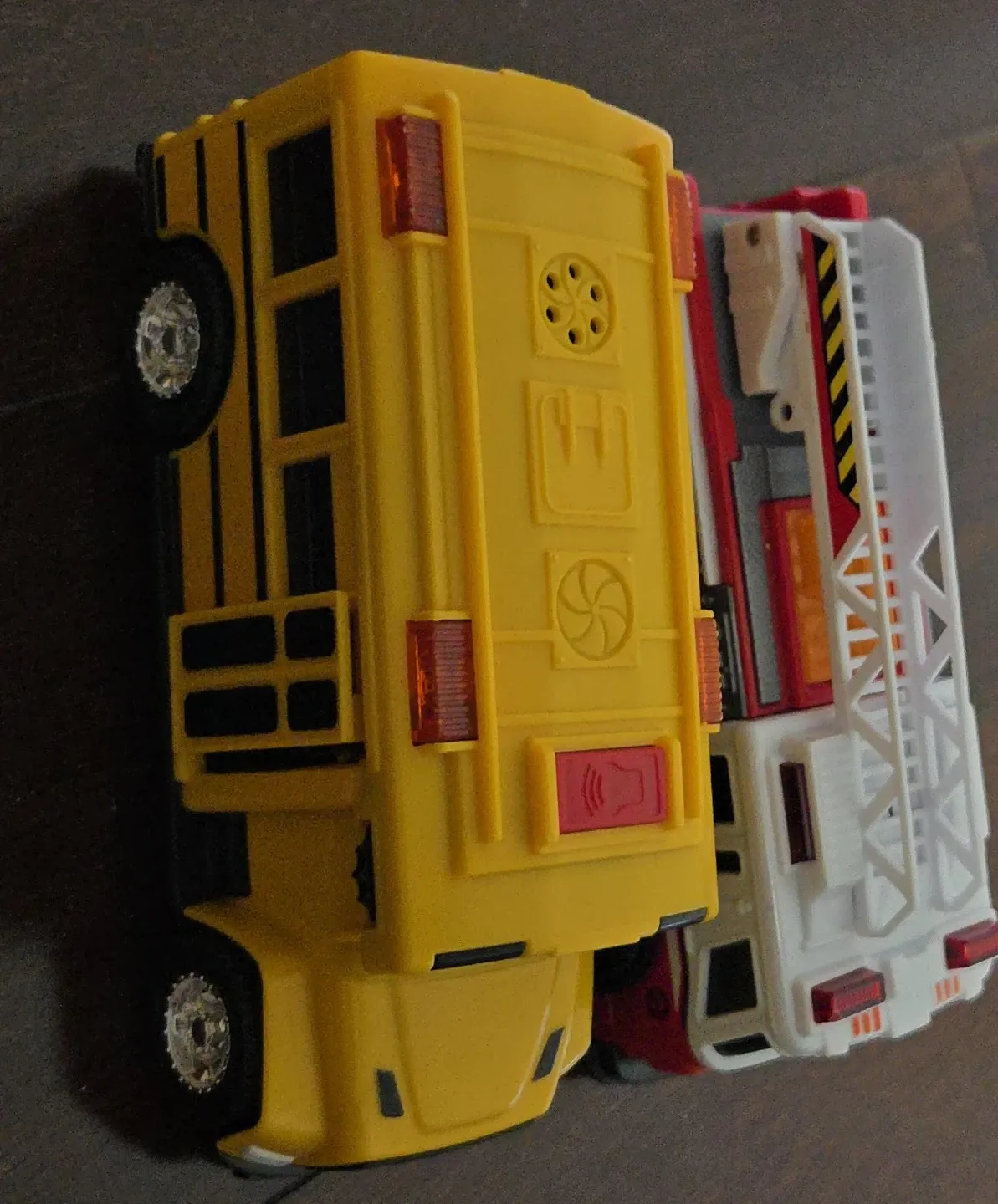Yellow School Bus and Fire Truck Toy Set