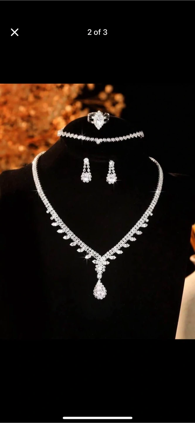 Selling a beautiful jewellery set that includes a necklace, bracelet, ring, and earrings. Perfect for a special occasion or to add a touch of sparkle to any outfit!