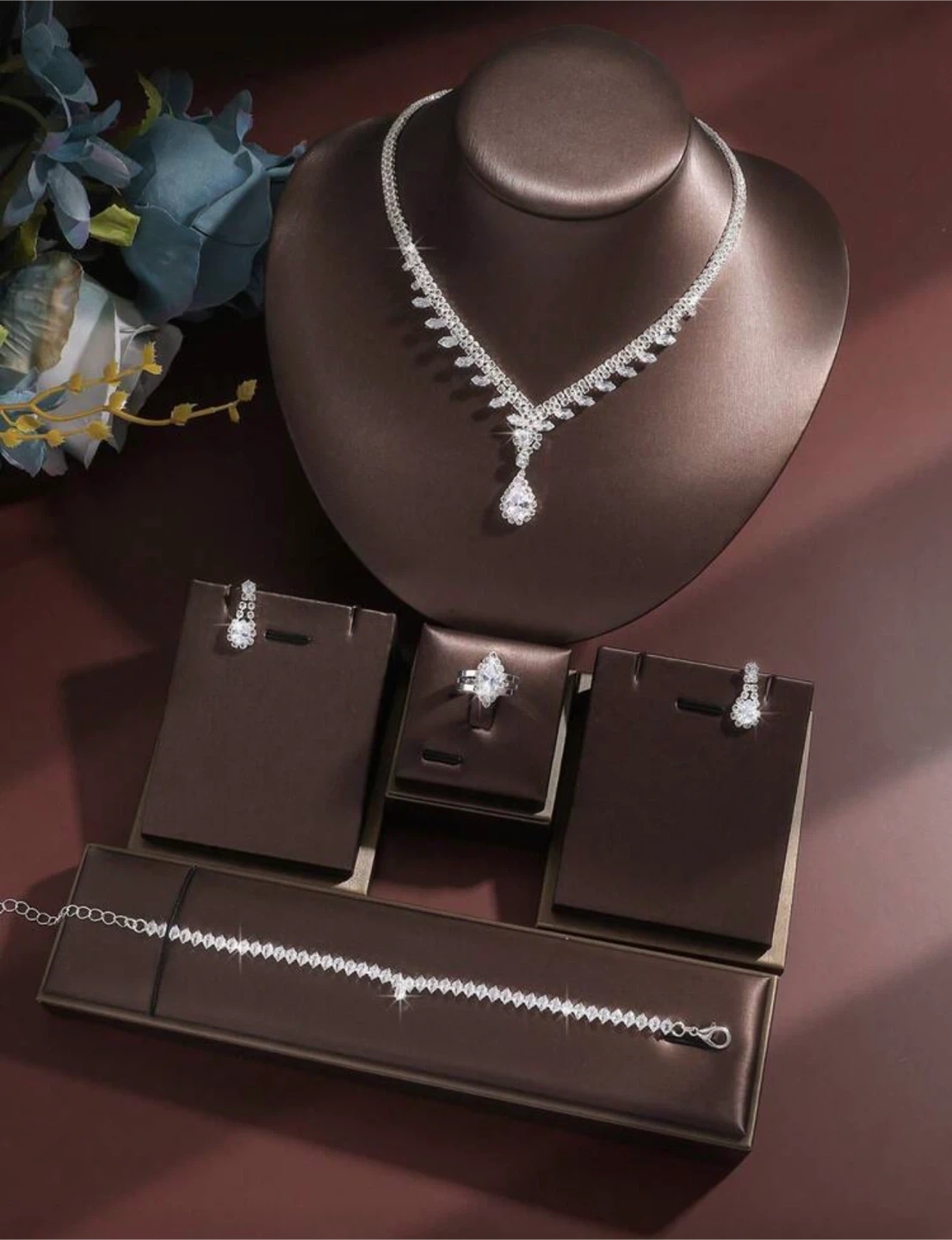 Jewellery Set: Necklace, Bracelet, Ring, Earrings