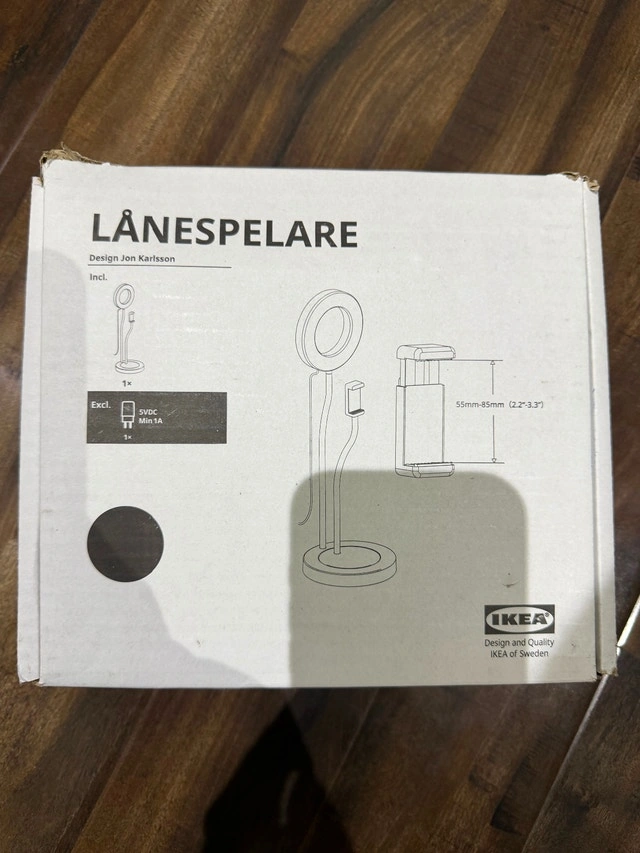 Selling a brand new, never used IKEA LÅNESPELARE ring light with phone holder. Perfect for content creation, filming videos, streaming, TikTok, Instagram, and video calls. Includes ring light, adjustable stand, and phone holder. Still in the box. $20 cash.