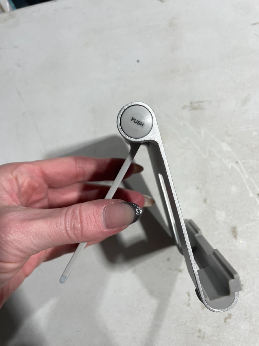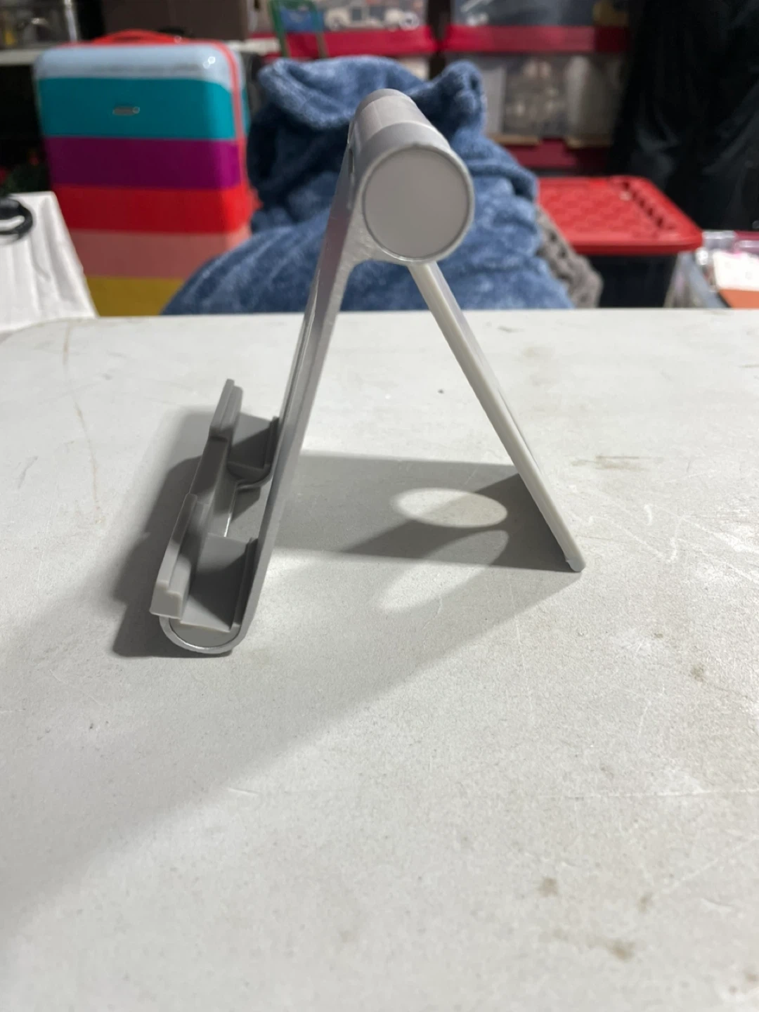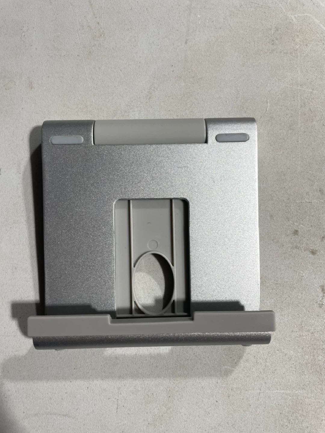 This adjustable tablet stand is made of durable aluminum. It features a foldable design for easy storage and transport. The stand is perfect for holding your tablet at a comfortable viewing angle.
