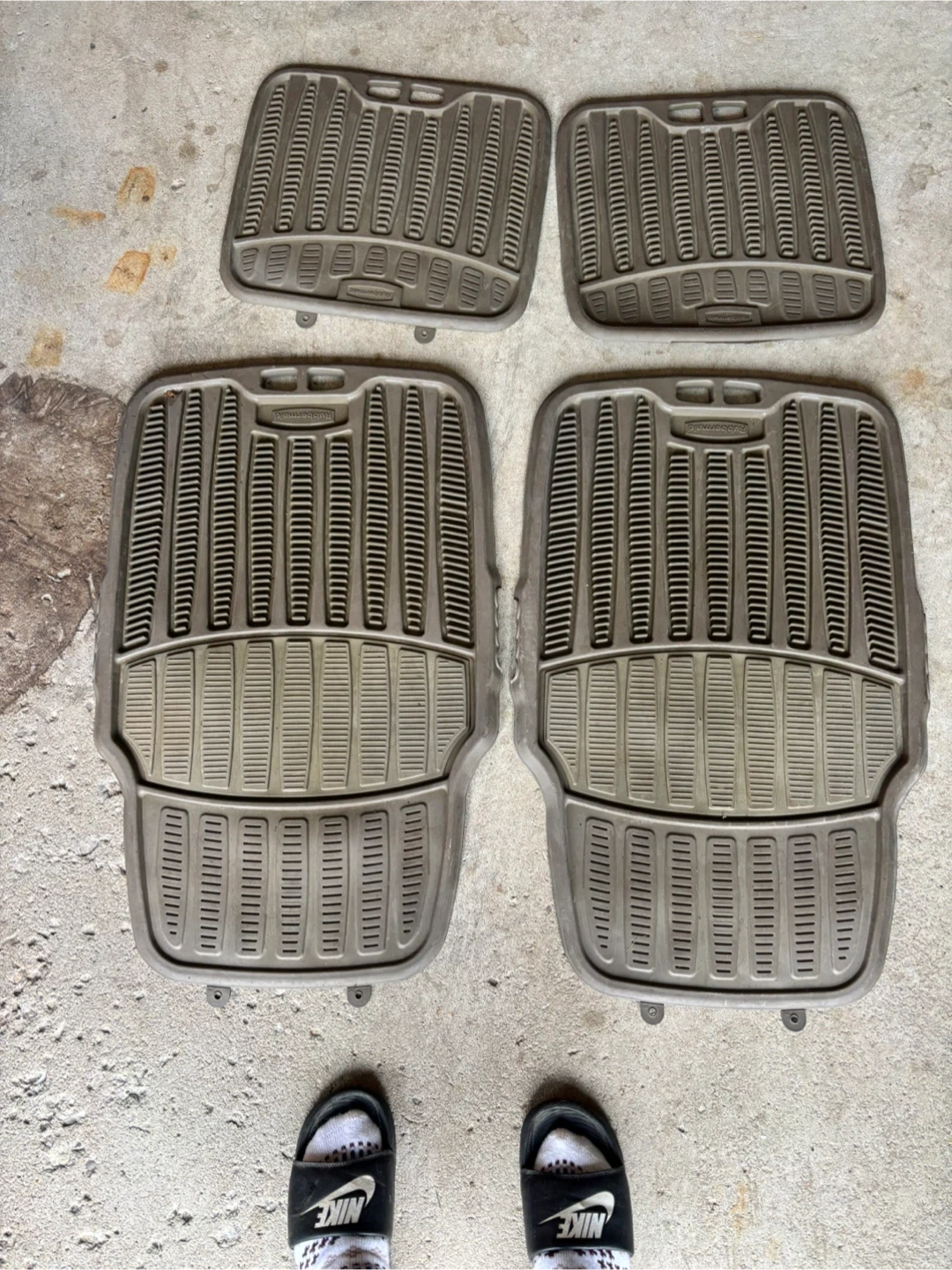 10Selling a set of four Rubbermaid car floor mats in a neutral beige colour. They're in good used condition and ready to protect your car's interior from dirt and spills!