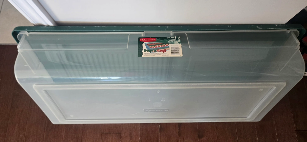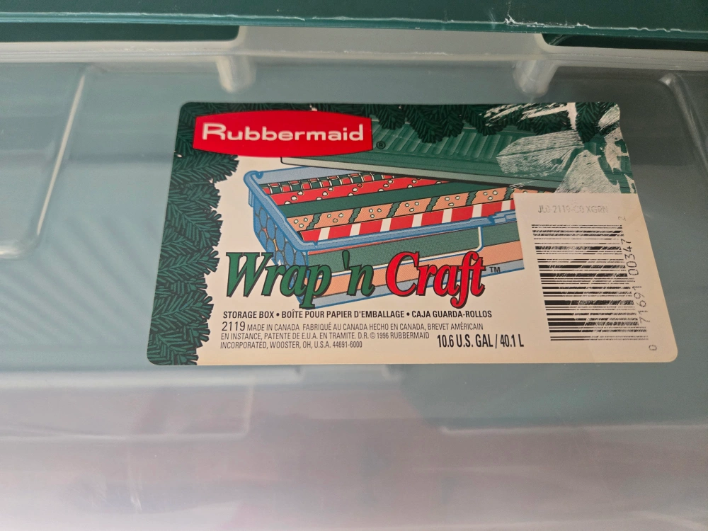 Selling a Rubbermaid Wrap 'n' Craft storage box! It's perfect for keeping your holiday decorations or craft supplies organized. The box has a capacity of 10.6 gallons / 40.1 liters. I have 2 similar boxes for sale.