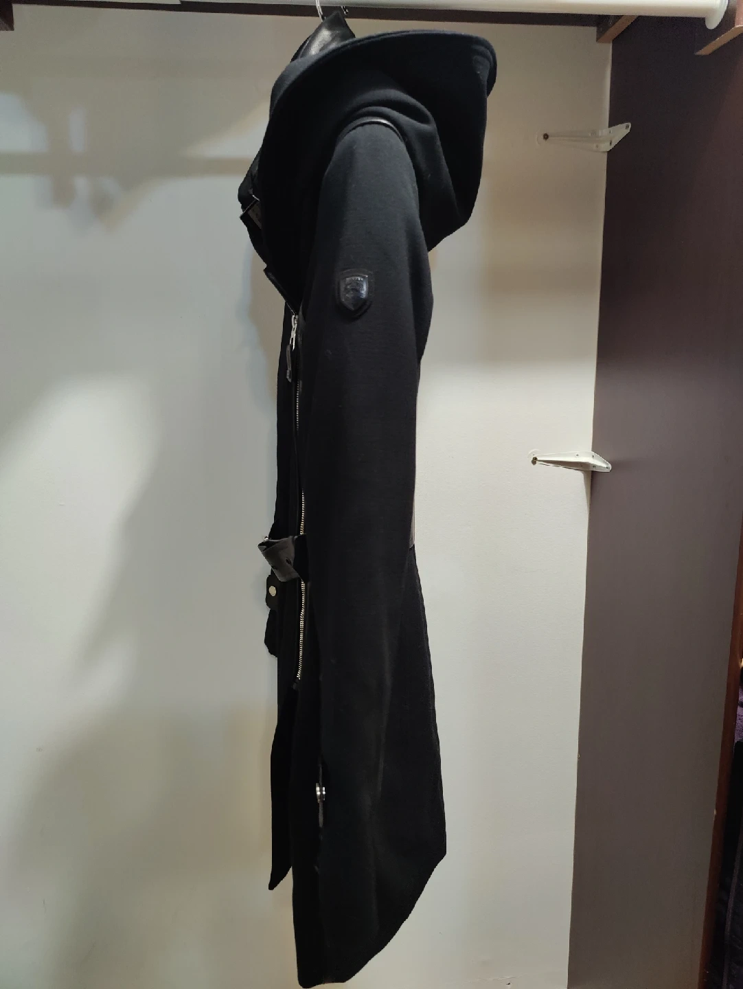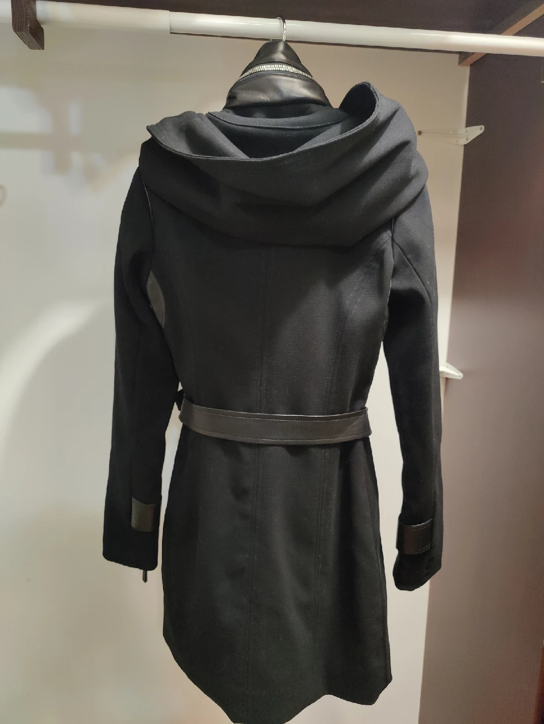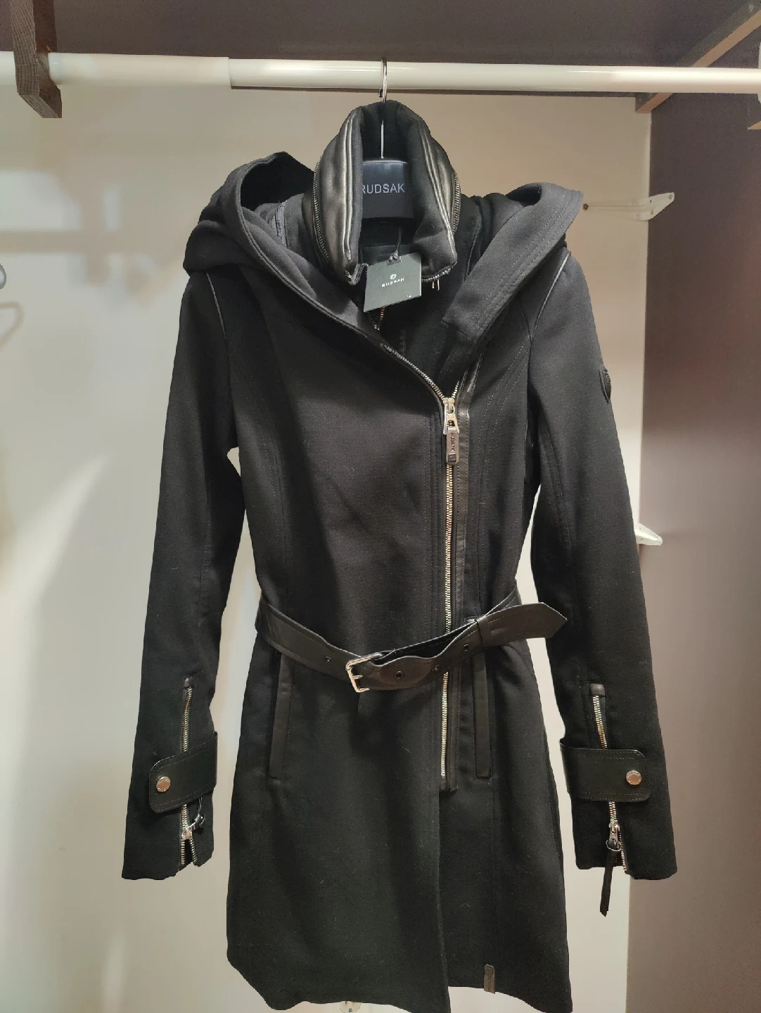 1000+Selling a stylish New Rudsak black hooded coat! It features a sleek design with a belted waist and leather accents. Perfect for staying warm and fashionable!