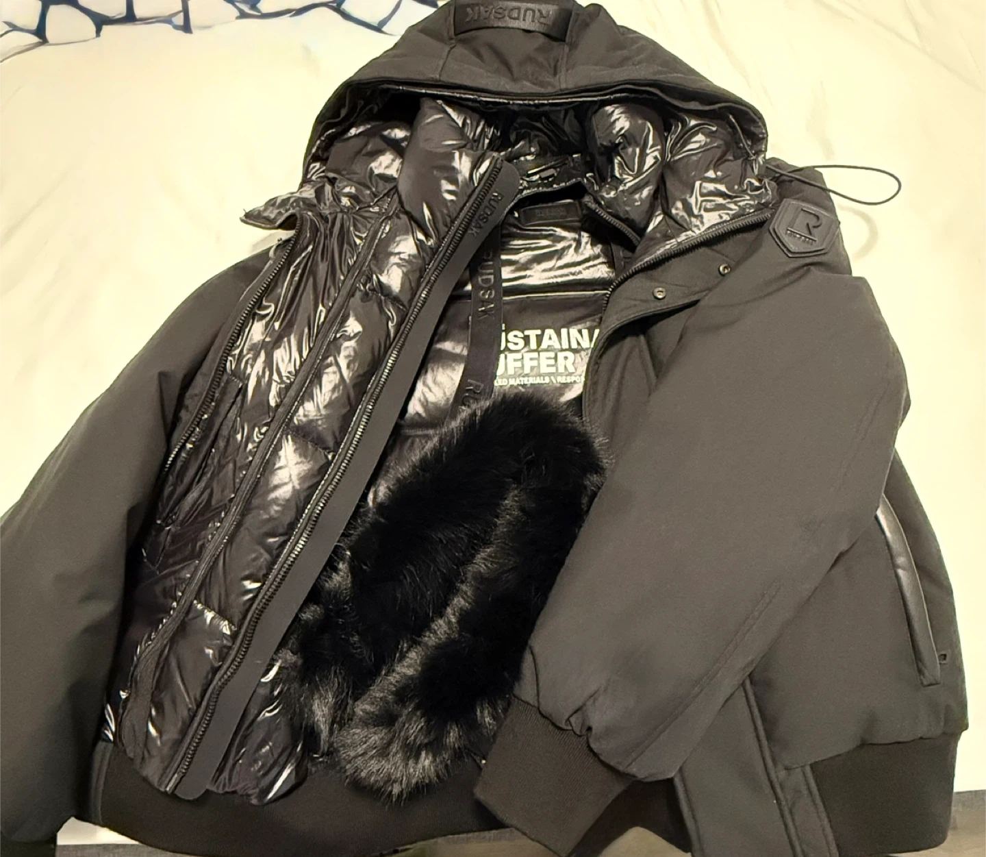 10Rudsak Dallas Quilted Down Bomber/Winter Jacket With Removable Faux Fur In Pristine Like New Condition. Relocating hence unwillingly giving it away. Come take a look and see for yourself. It’s as good as new. Online price is $700+Tax https://rudsak.com/products/mens-outerwear-dallas-m122501-black?gad_source=1&gad_campaignid=18033450657&gbraid=0AAAAADyimtlduPqwxrwDJSCxv52elcQhd&gclid=EAIaIQobChMI1M_5h7rokAMV-B-tBh3MRRQrEAQYASABEgK32_D_BwE