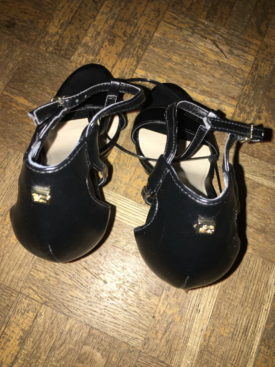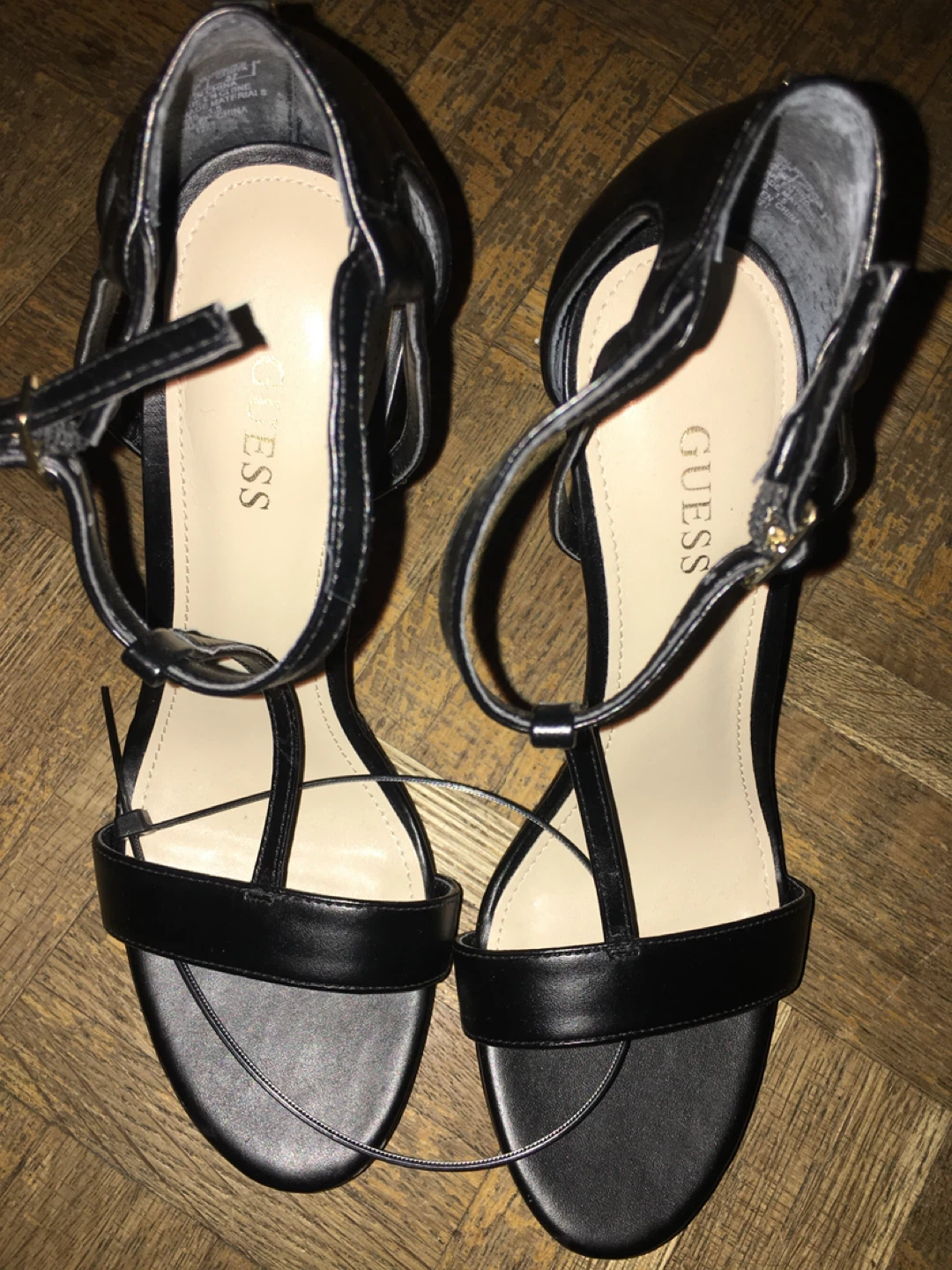 Guess black strappy heeled sandals. These heels have a secure ankle strap and a stylish t-strap design. Size 9.