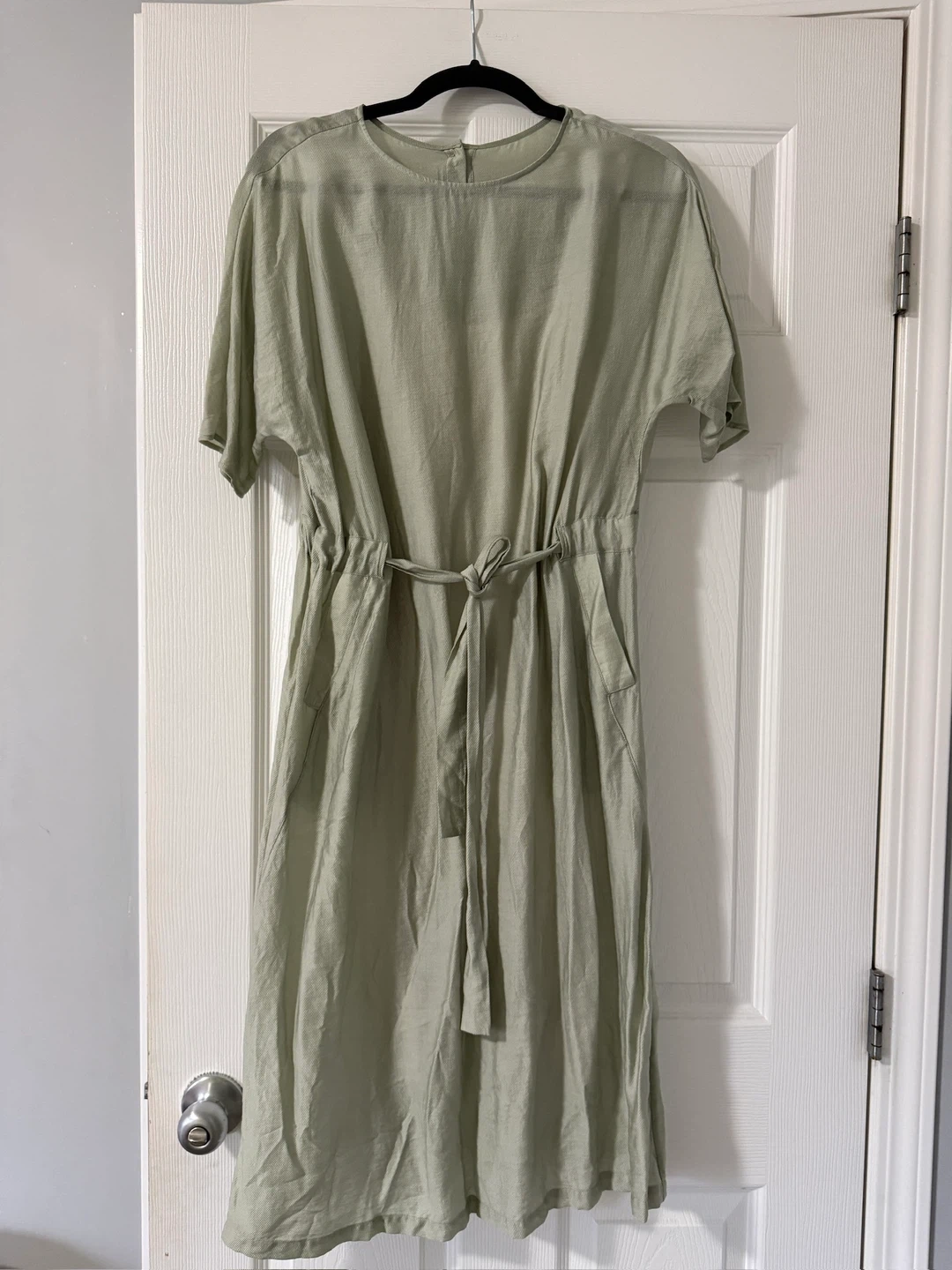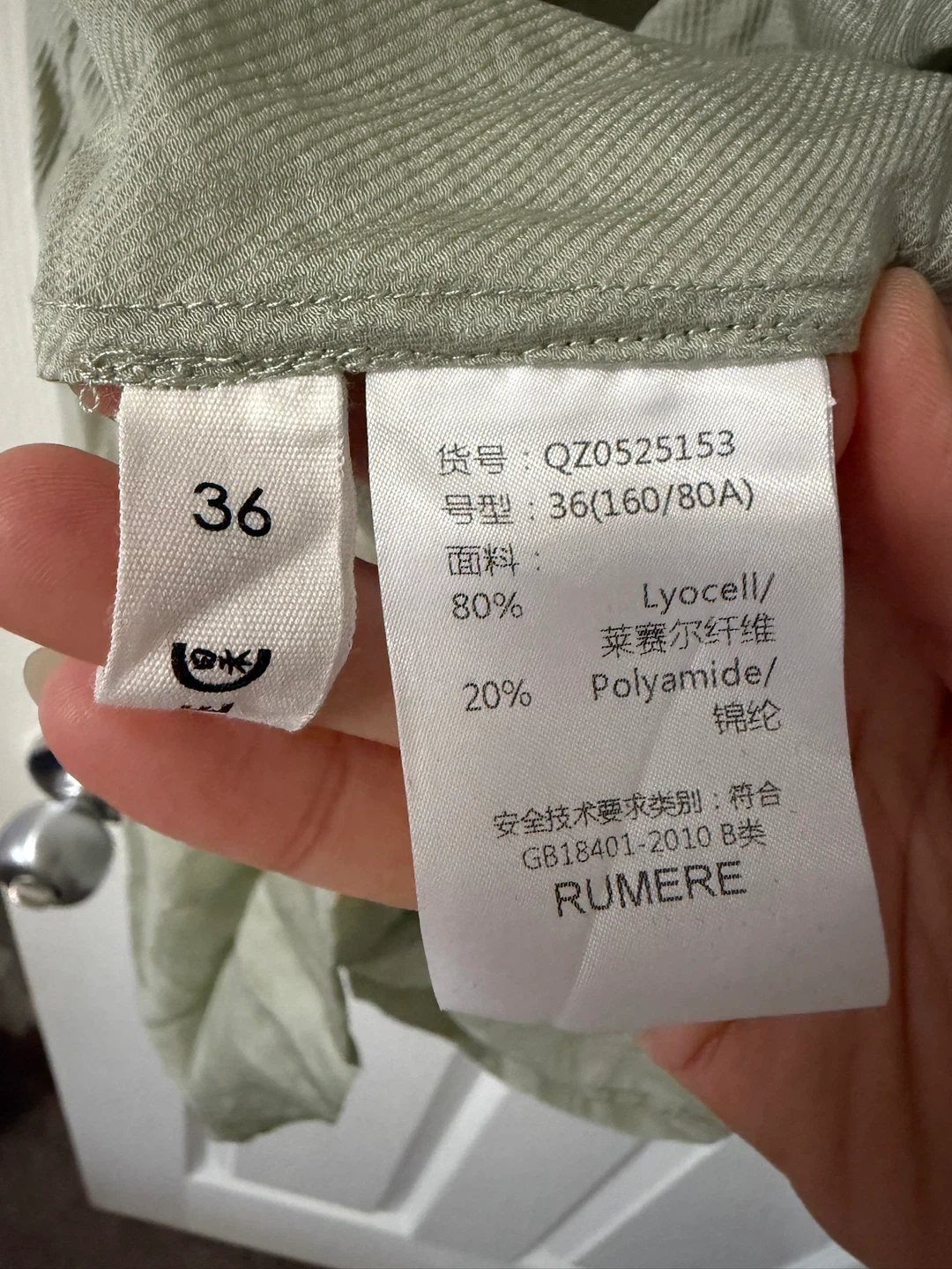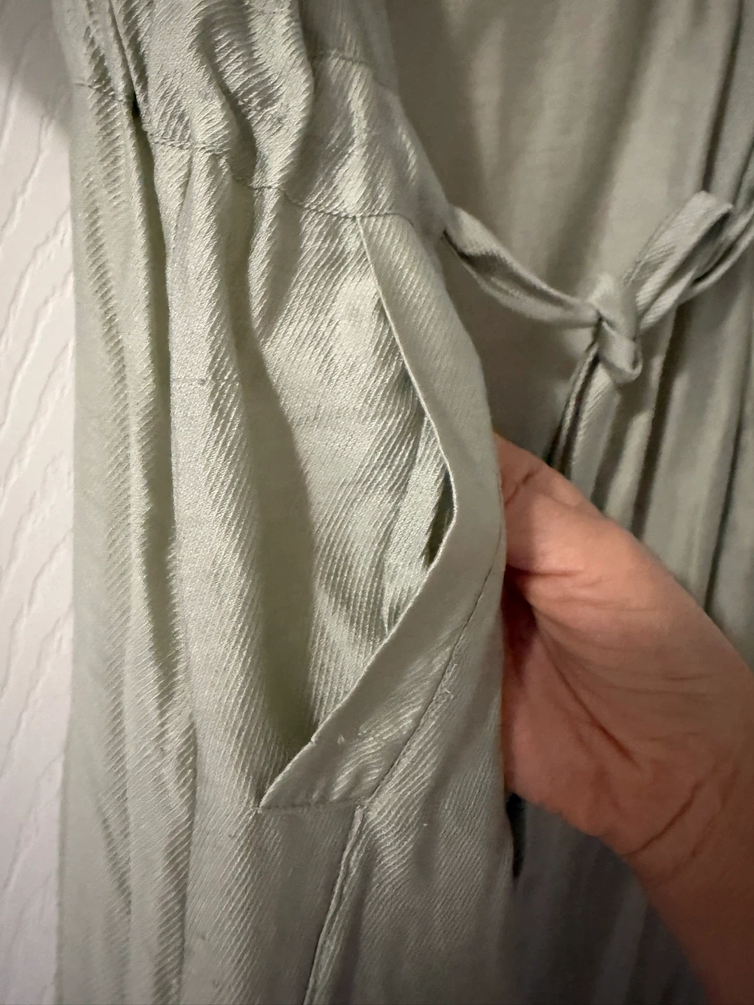 25Selling a cute Rumere dress in a lovely sage green colour! It's a size 36 and made of 80% Lyocell and 20% Polyamide. Perfect for a casual day out or a relaxed evening at home