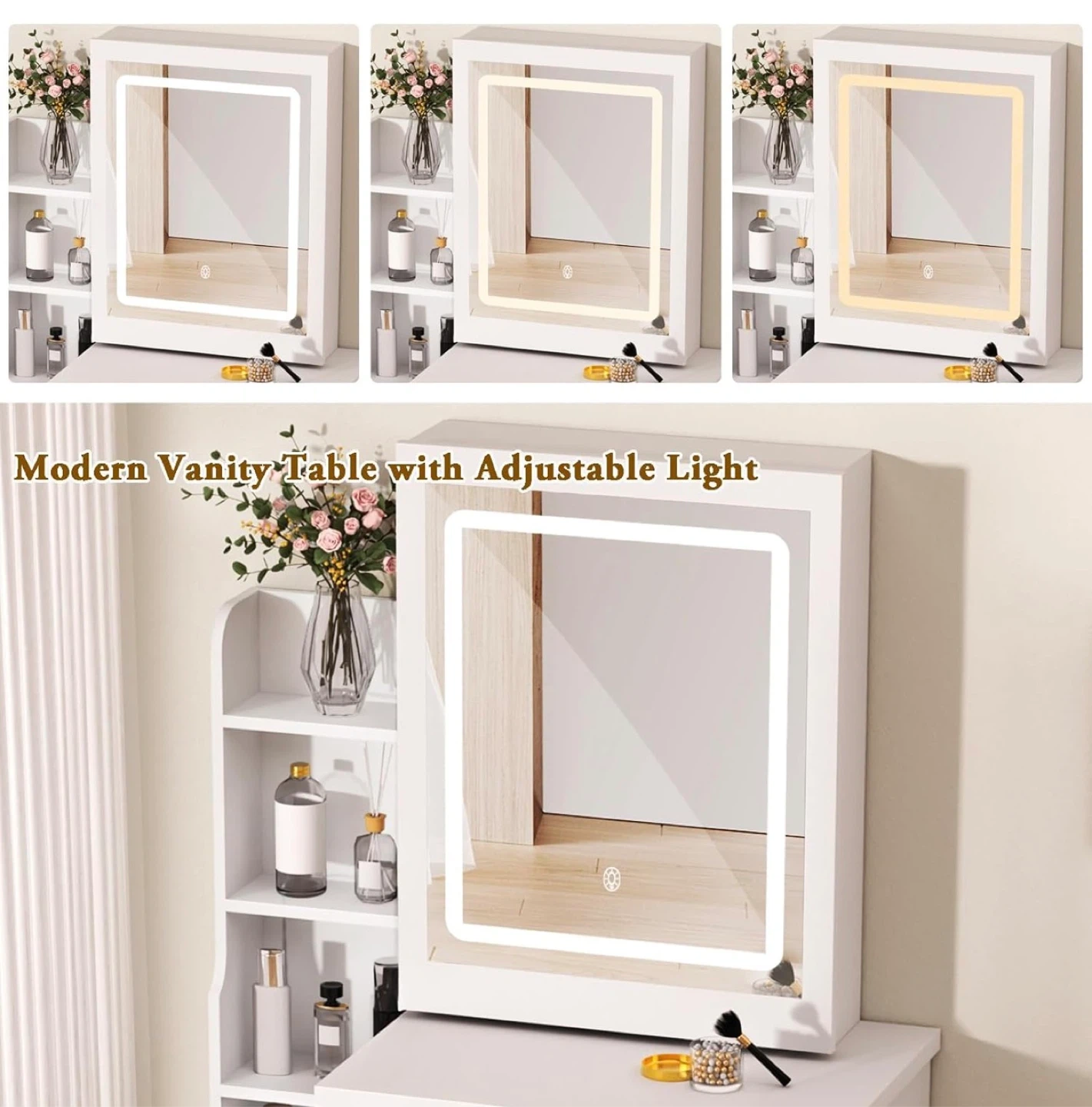 Vanity Makeup Table Desk with Lighted Mirror & Stool