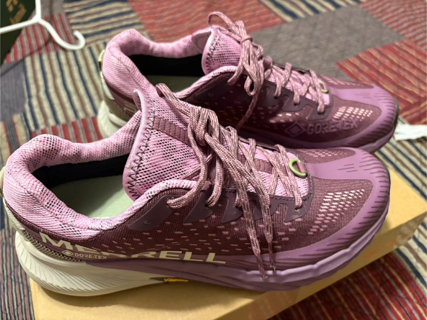 20Brand new, never used. Pick up westney and magill in Ajax. Selling a pair of Merrell MTL MQM trail running shoes in a lovely purple colour! These are a women's size US 10, UK 9.5, EUR 44, CM 28. They have Gore-Tex for waterproof breathability and Vibram soles for great traction. Comes with the original box!