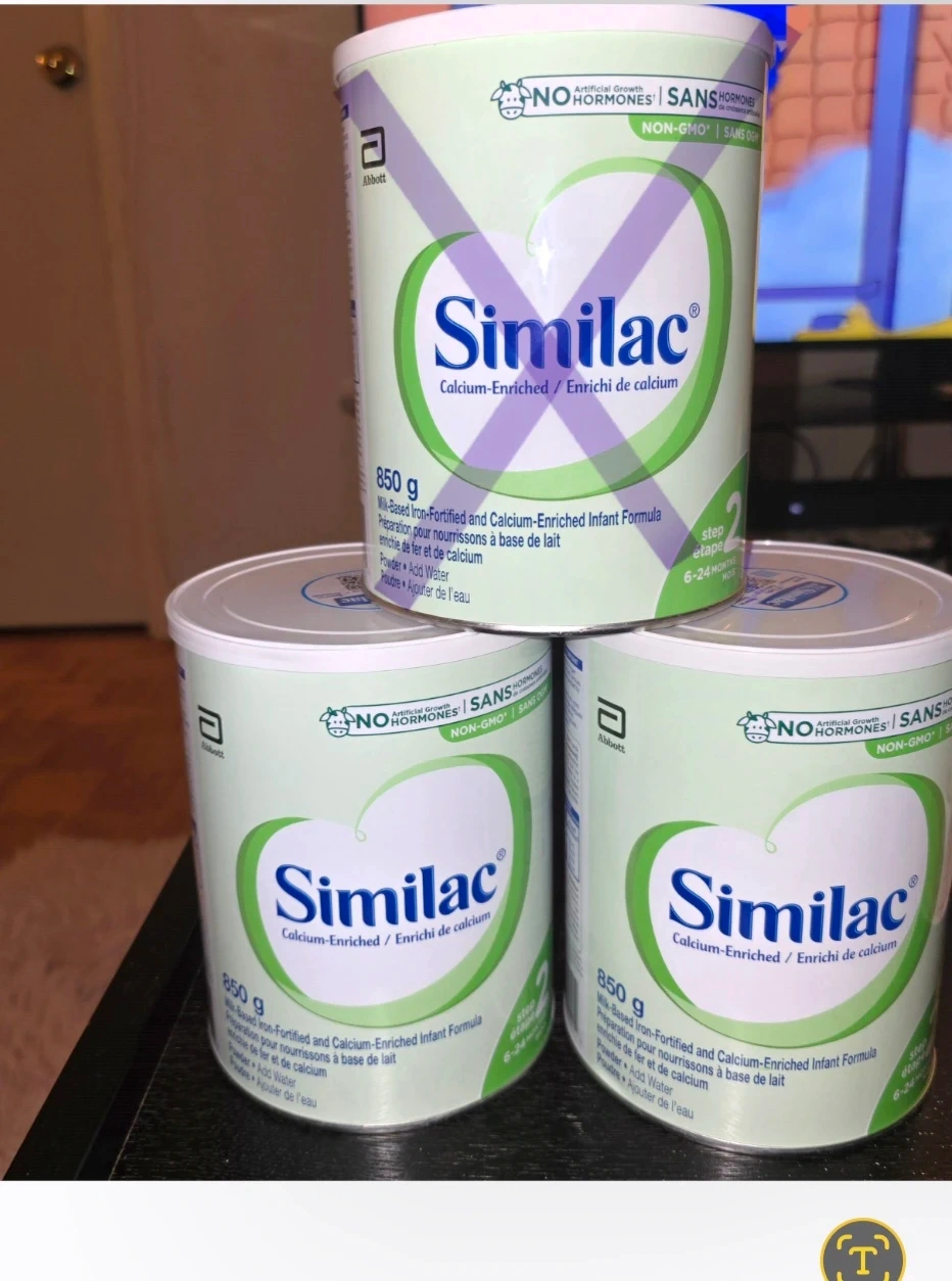 Two cans of Similac Step 2, calcium-enriched infant formula. Each can is 850g. This formula is milk-based and fortified with iron. It's suitable for babies aged 6-24 months. It's made without artificial growth hormones or GMOs.