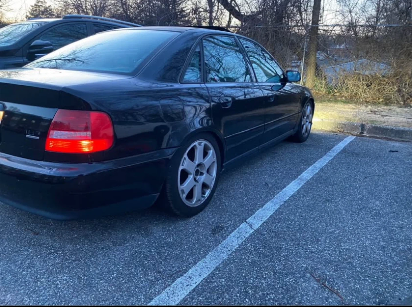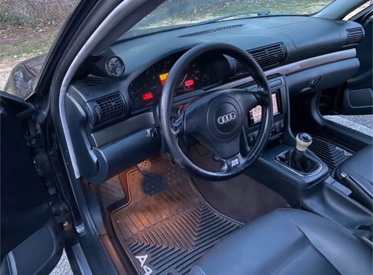 Black Audi A4 Quattro sedan. Features a manual transmission and leather interior. It has an aftermarket boost gauge on the dash.