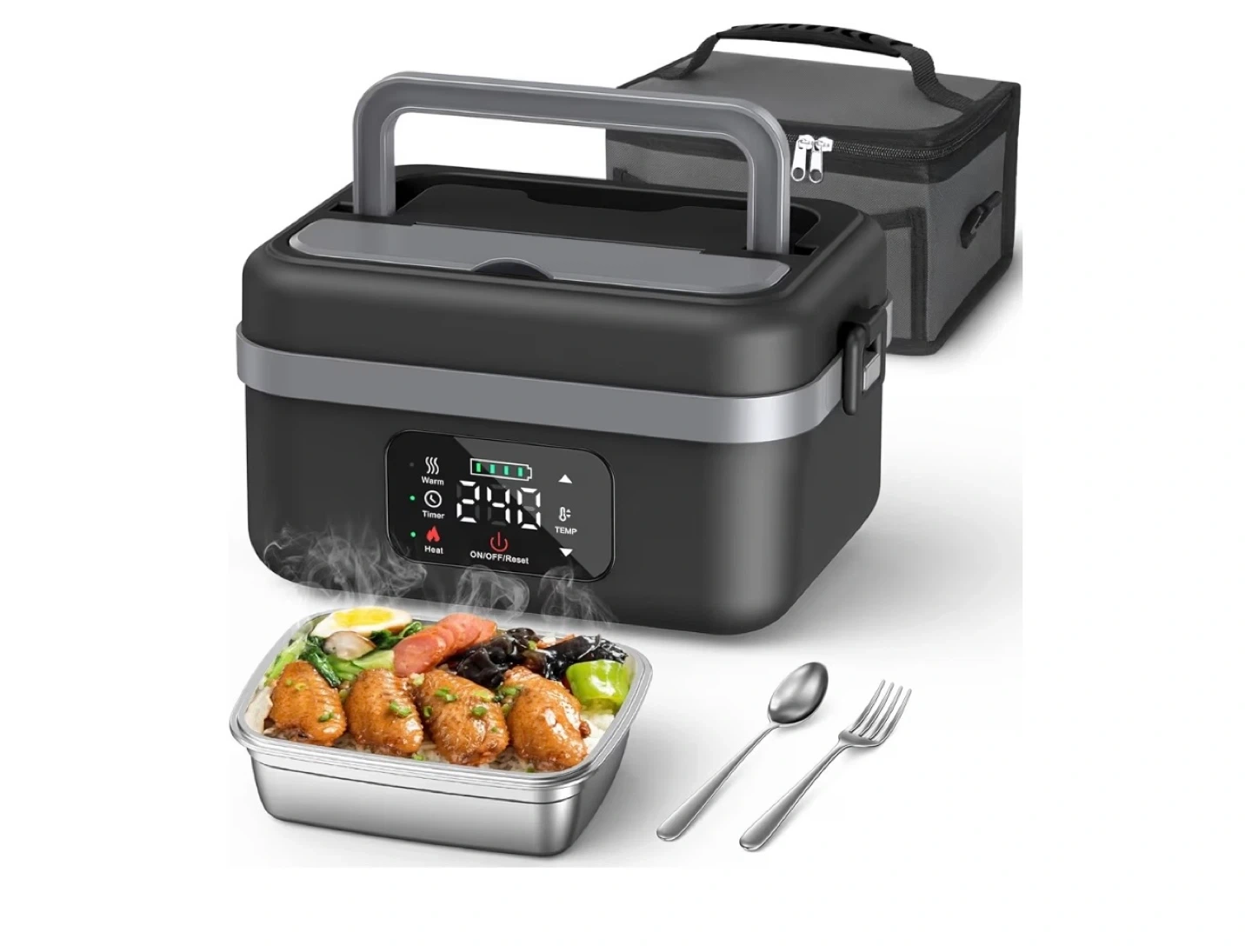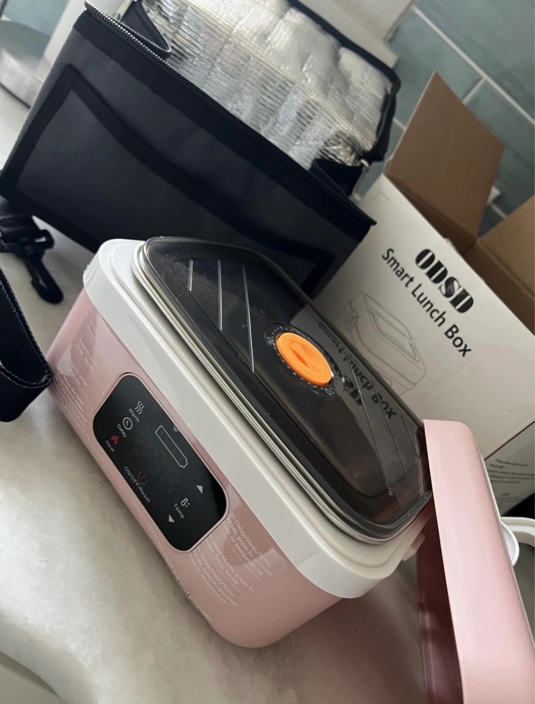 Cordless electric lunch box. Pink and white color. Re-chargeable self heating lunch box. Food warmer with timer and adjustable heating. 34 oz/ 1 liter container and comes with an insulated bag. Both lunchbox and bag have a handle for easy carrying. 4.8 inches height X 8.2 inches length X 6.1 inches width. Heats up hot meals in minutes. Purchased it for $69.99 on Amazon. From a smoke free, pet free home. Priced to sell. Pick up only and cash only please, I am in Lakeview East near Broadway and Belmont.