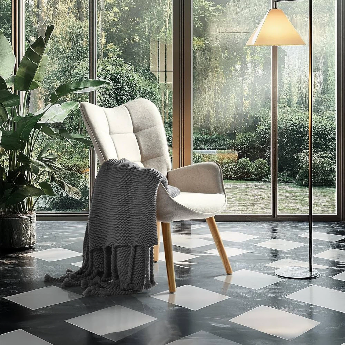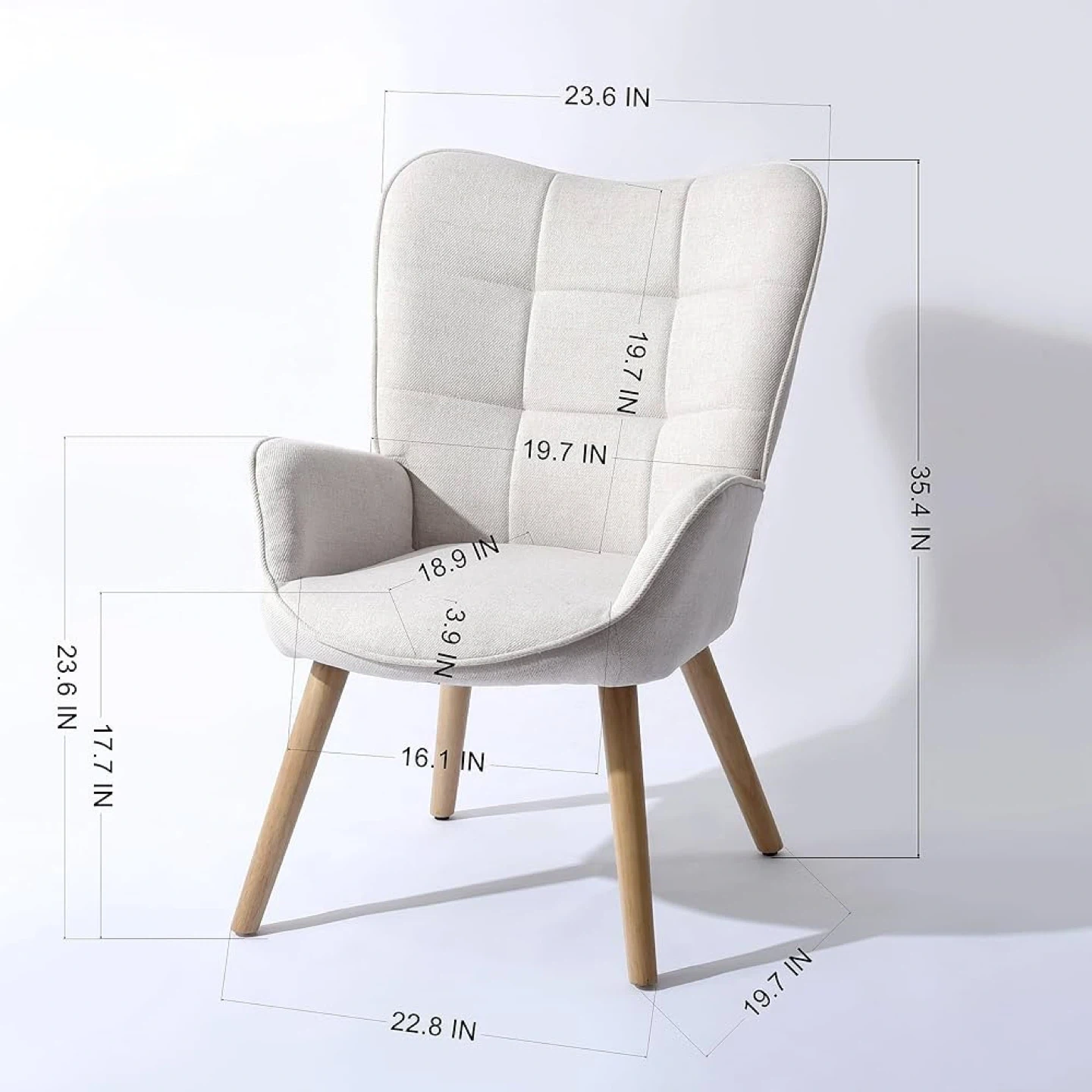 Living Room Accent Chair Leisure Chair - Nursery Armchairs with Tufted Upholstery Wing Mid Back Solid Wood Legs, Beige Fabric Oak Wood