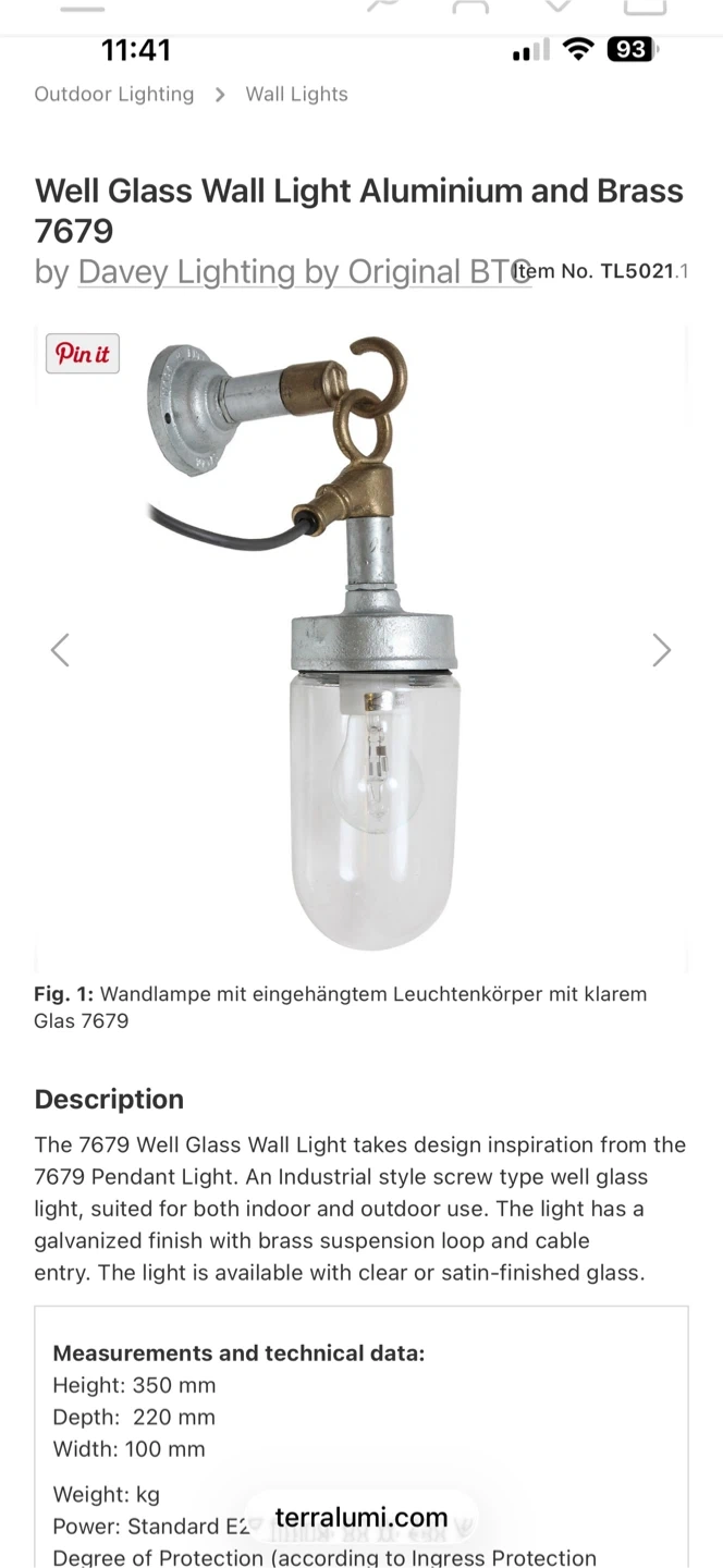 An original Davey factory wall /ceiling light. Perfect condition just taken down. Wires into any standard socket & takes standard bulbs. Made in England. Indoor outdoor.