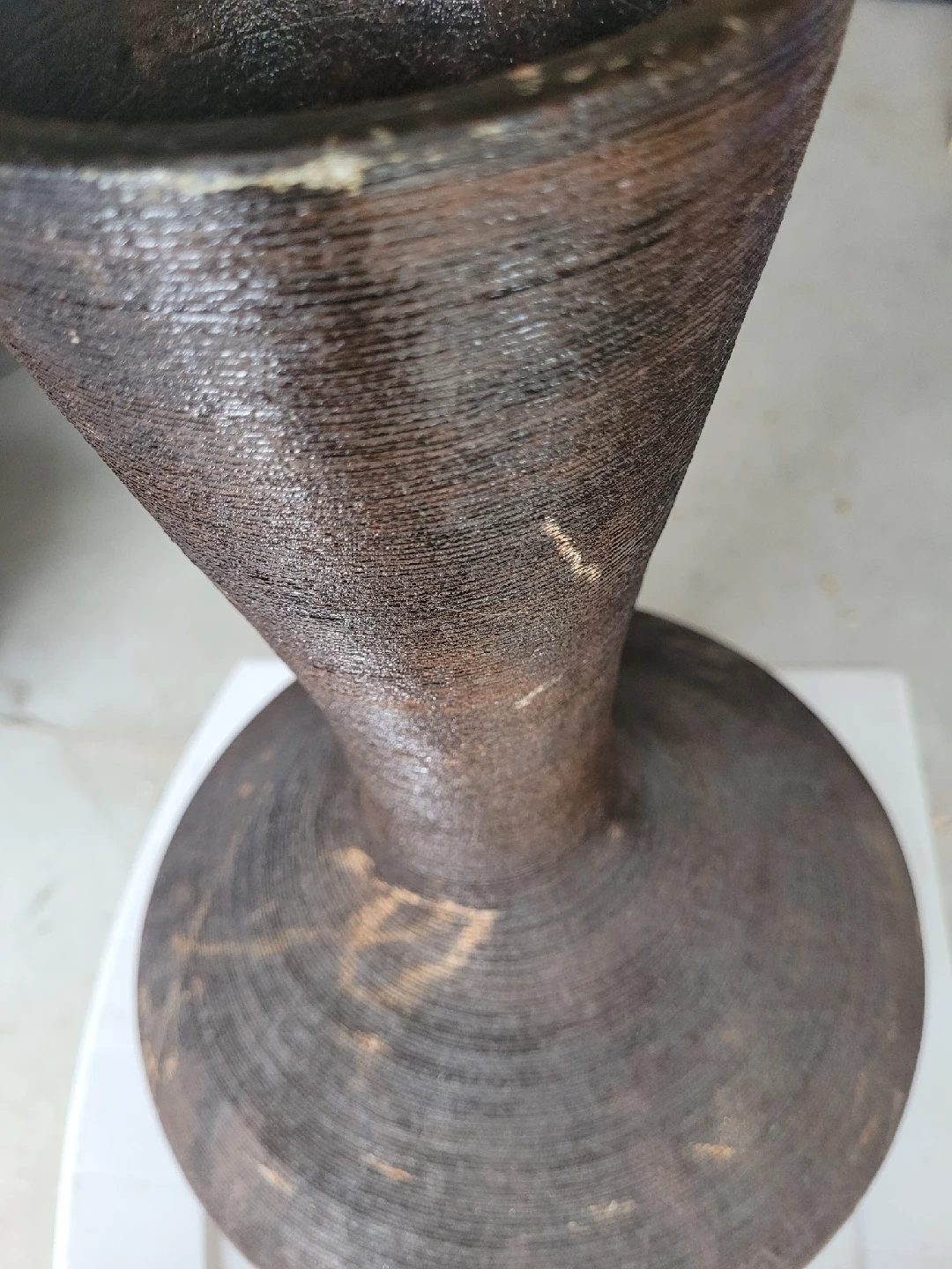 15Selling a rustic brown decorative vase. It has a unique shape and texture that would look great in any home. There are some signs of wear, but it adds to the character of the piece