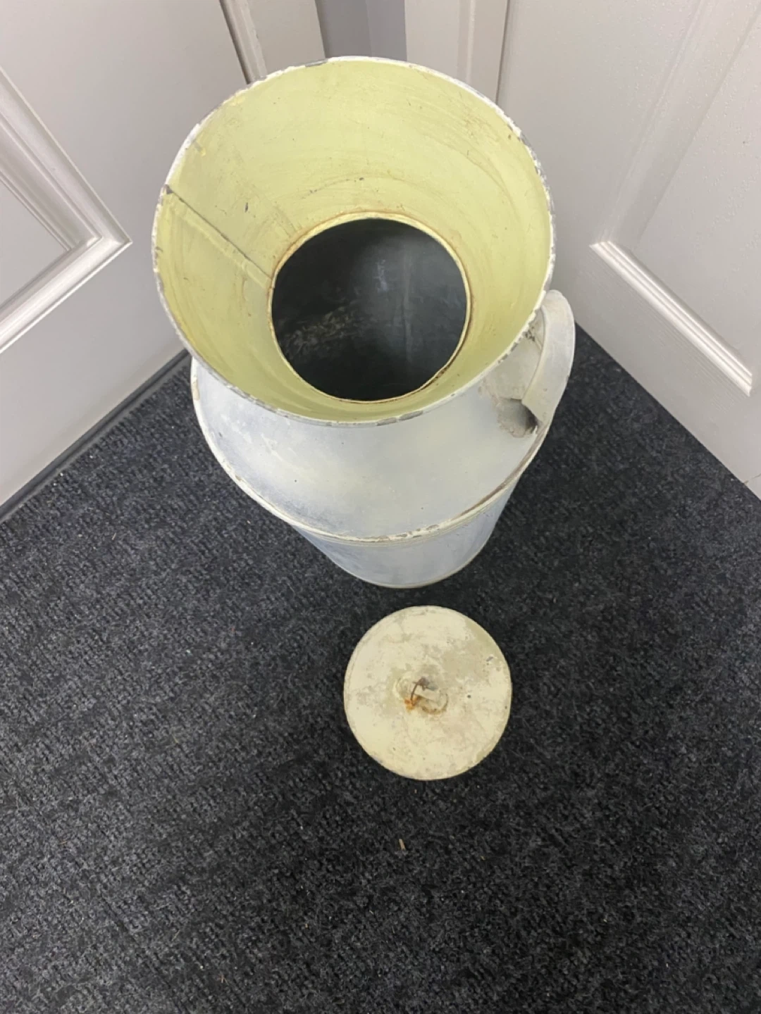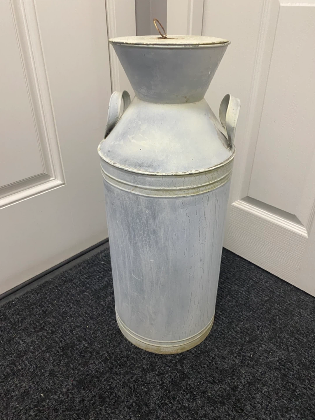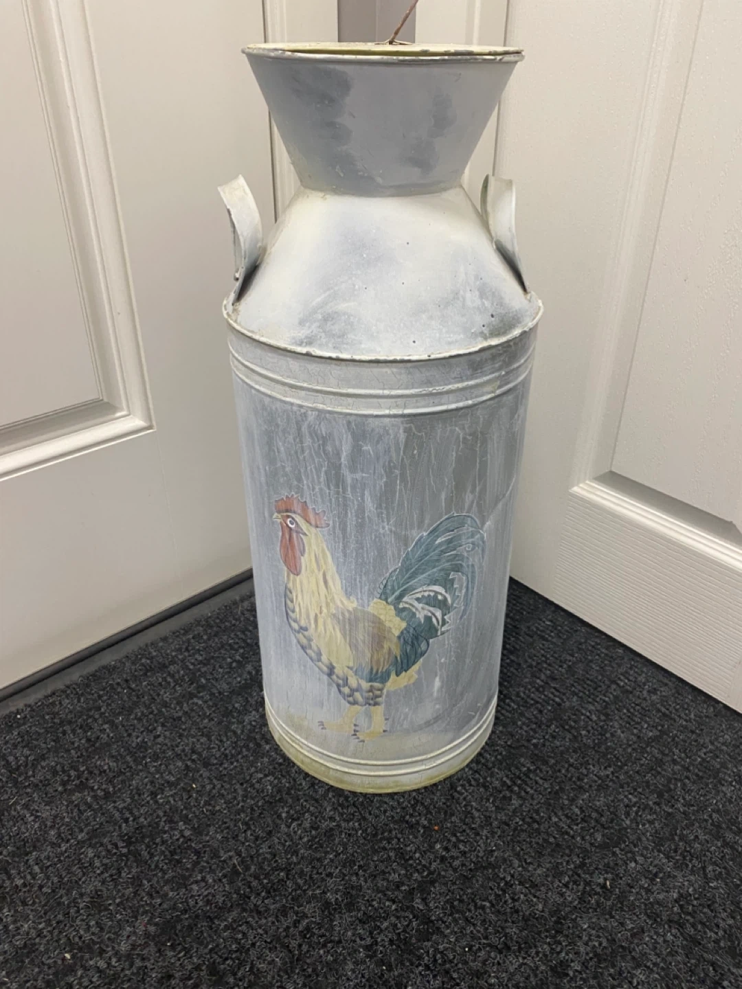 100This is a charming decorative metal style milk can, perfect for adding a touch of rustic flair to your home. It features a delightful rooster design. It has a white/grey colour and is in good condition. 24 inches tall 7 inches across the opening Pick up Sage Hill NW Cash only Check out my other items Pet and smoke free home