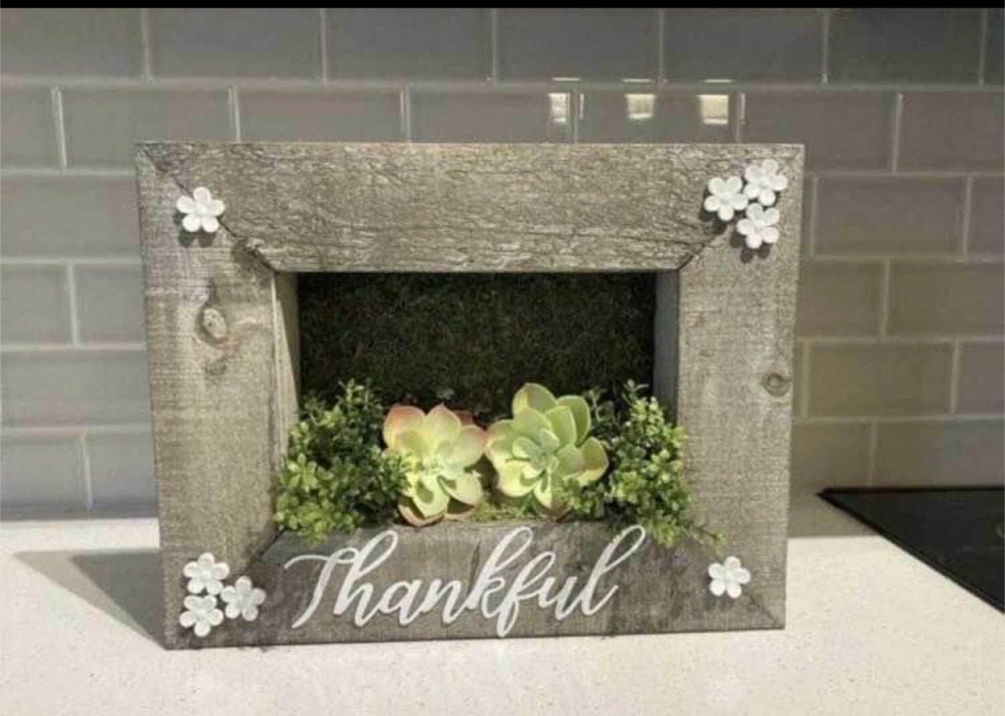 Handmade- Add a touch of rustic charm to your space with this cute wood box! It features a lovely succulent arrangement and the word "Thankful" in elegant script. Perfect for adding a cozy vibe to any room