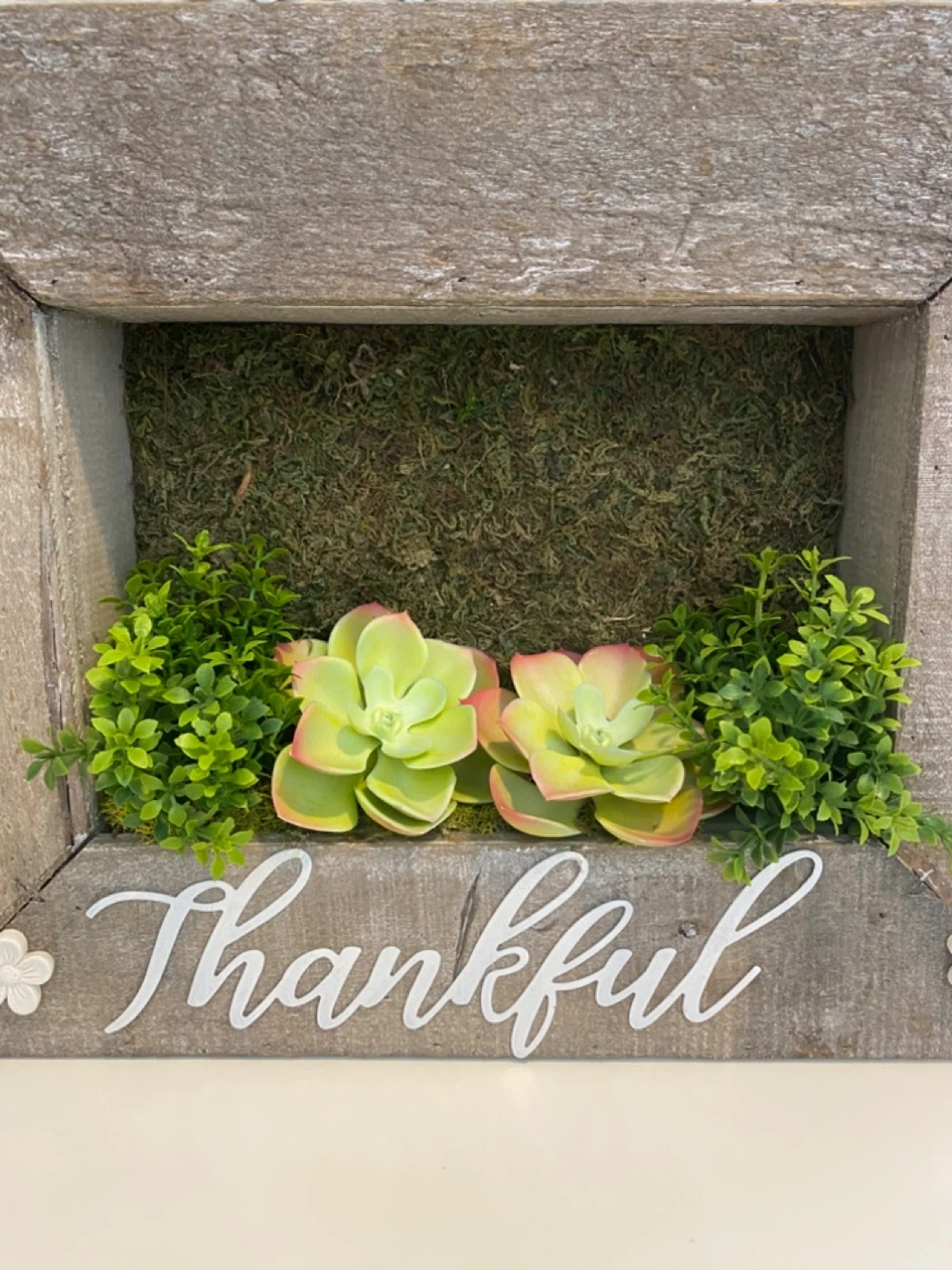 Show allRustic Wood Box Succulent Decor - "Thankful"