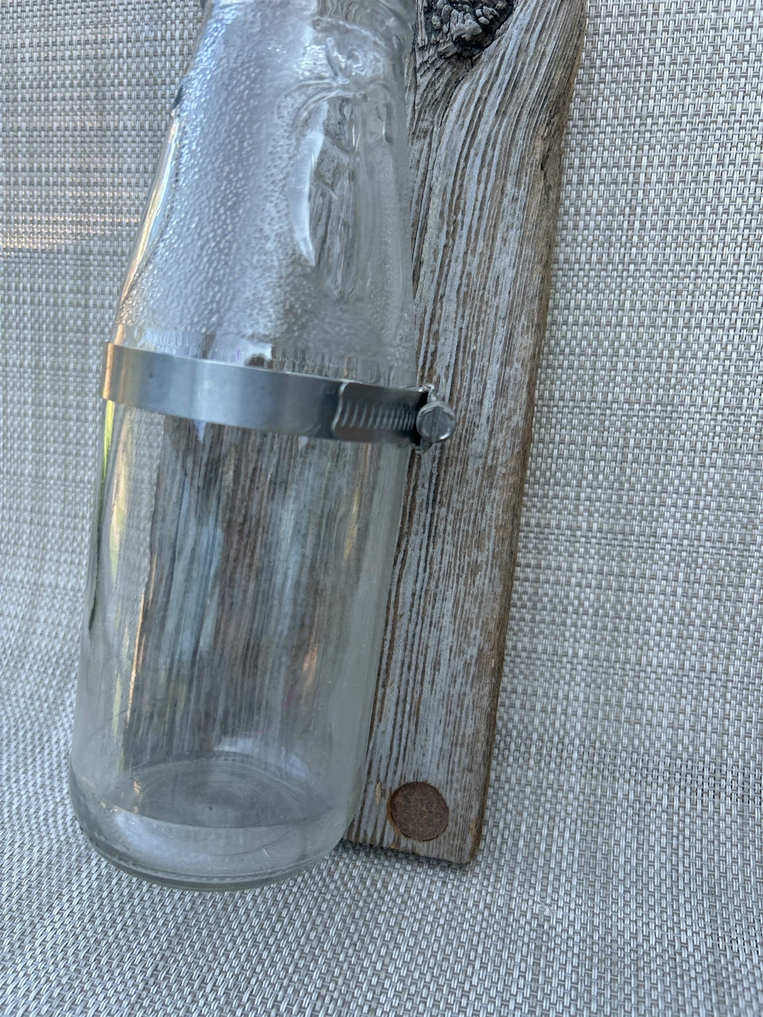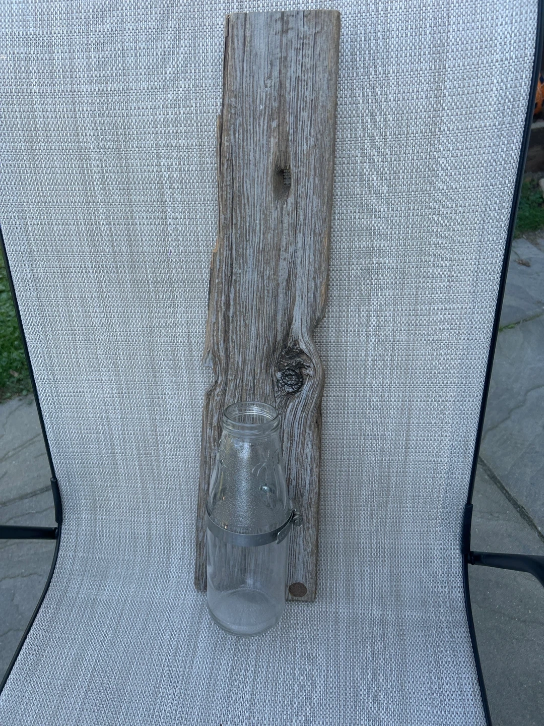 100Selling a unique rustic wood plank that comes with a glass bottle holder! The plank is approximately 22 inches long and 4 inches wide. It would make a charming addition to any home decor