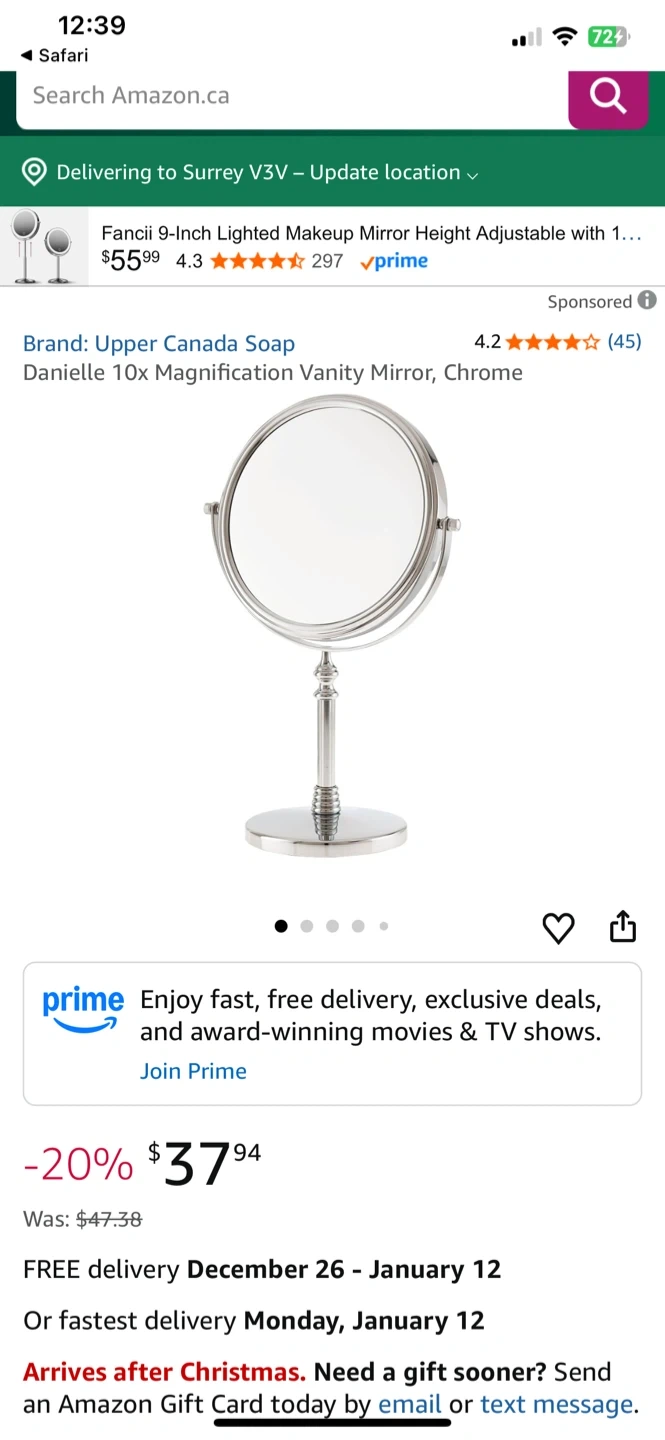 Buy & SellDanielle Chrome 10x Magnification Vanity MirrorDanielle Chrome 10x Magnification Vanity Mirror$15Selling a Danielle 10x magnification vanity mirror in chrome. It's in great condition and perfect for makeup application or detailed grooming!BrandDanielleWHERE TO MEETFamous Food kingswayView MapSELLERverifiedJediKensington Cedar Cottage17716 reviews0 chats·1 favorites·10 viewsSEND CHAT TO SELLERHi Jedi! I’m interested in your listing.Hi Jedi! I’m interested in your listing.Get the Karrot app to chatSign In to chat