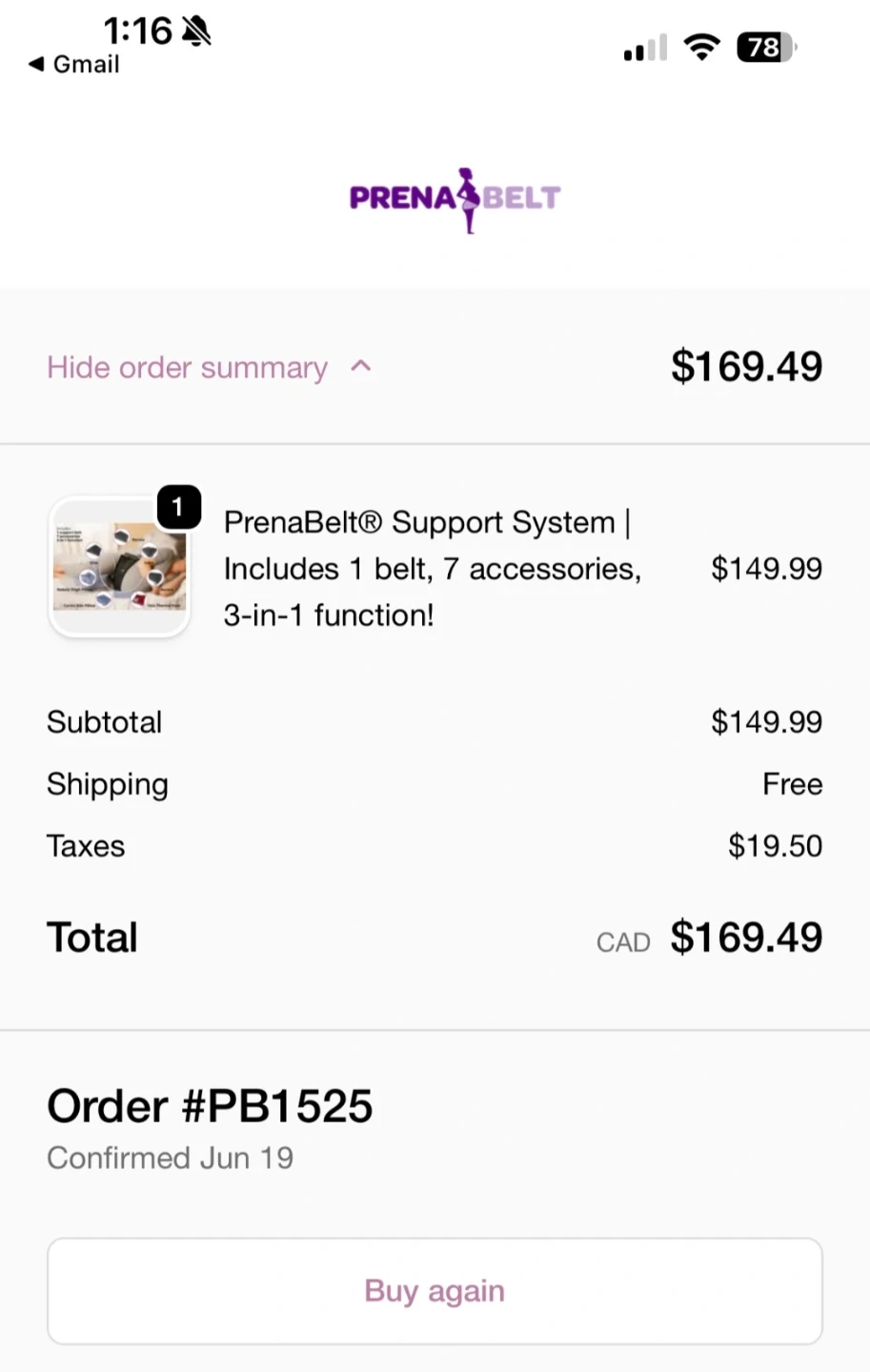 Prena Belt Support System, includes 1 belt and 7 accessories for a 3-in-1 function. This system is designed to offer support. Some components are dark grey, others are light grey and magenta. I used only belt when I was full-term. Everything else is in like-new condition.