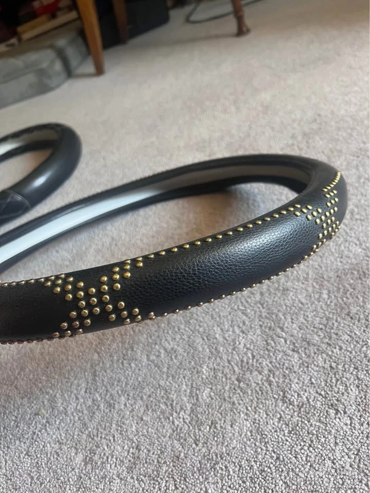 Cover 1: black leather quilted and padded. It’s very comfortable. $10