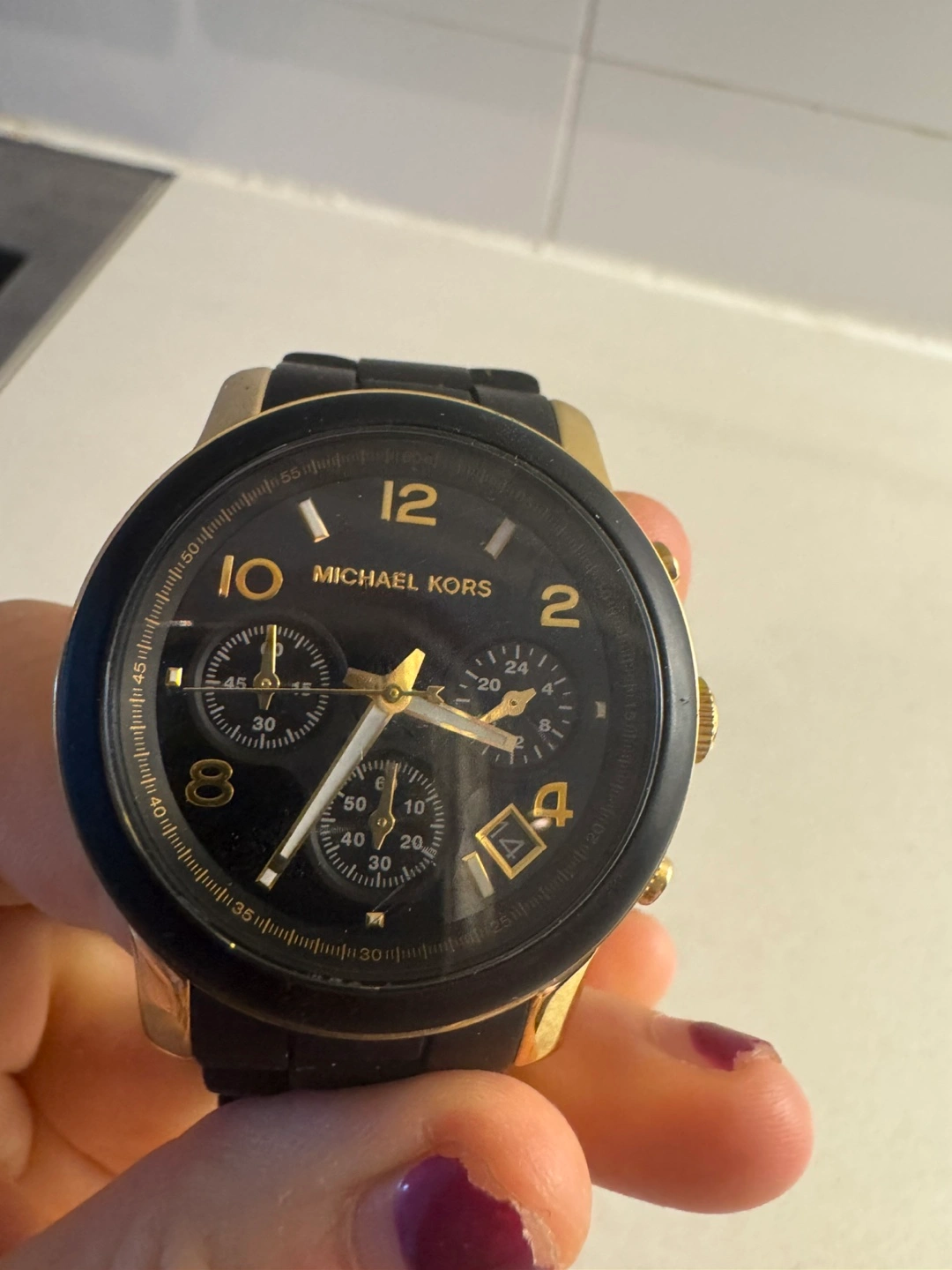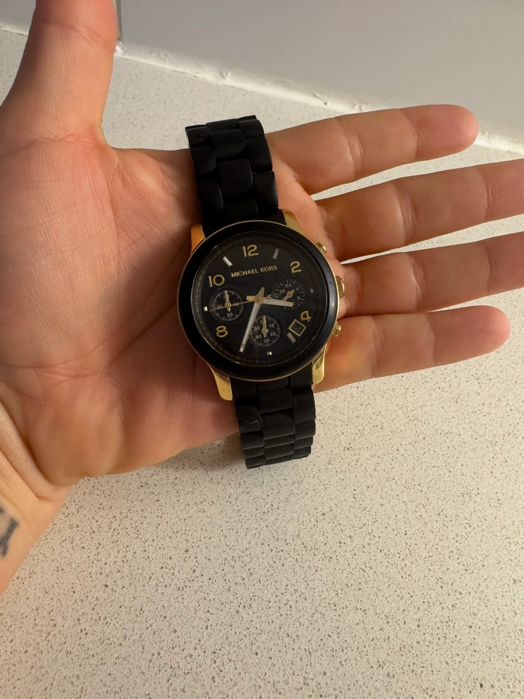 Buy & SellMichael Kors Runway MK5191 Women's Wrist WatchMichael Kors Runway MK5191 Women's Wrist Watch$50Michael Kors watch. Black silicone band, gold-tone accents. Chronograph functionality. Pre-owned. New battery neededConditionGoodWHERE TO MEETCheck LocationView MapSELLERverifiedAnnaCityPlace670 reviews0 chats·0 favorites·17 viewsSEND CHAT TO SELLERHi Anna! I’m interested in your listing.Hi Anna! I’m interested in your listing.Get the Karrot app to chatSign In to chat