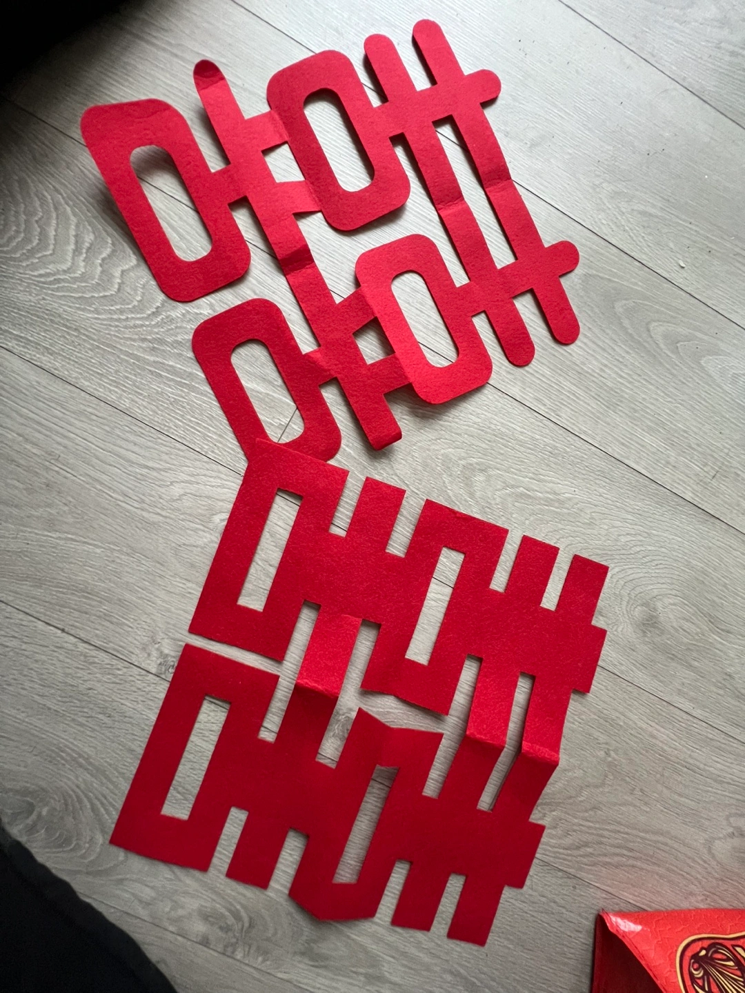 380 x 5cm assorted felt 囍 (good to stick to invites, gift cards, or sprinkle to make any platter more festive)