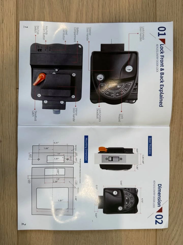 RV Keyless Entry Door Lock with 2 Remote Key Fobs