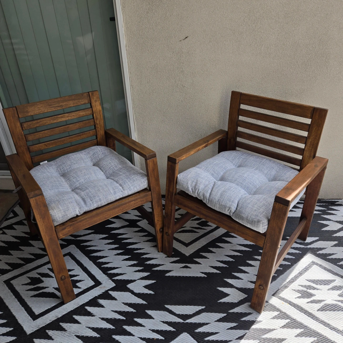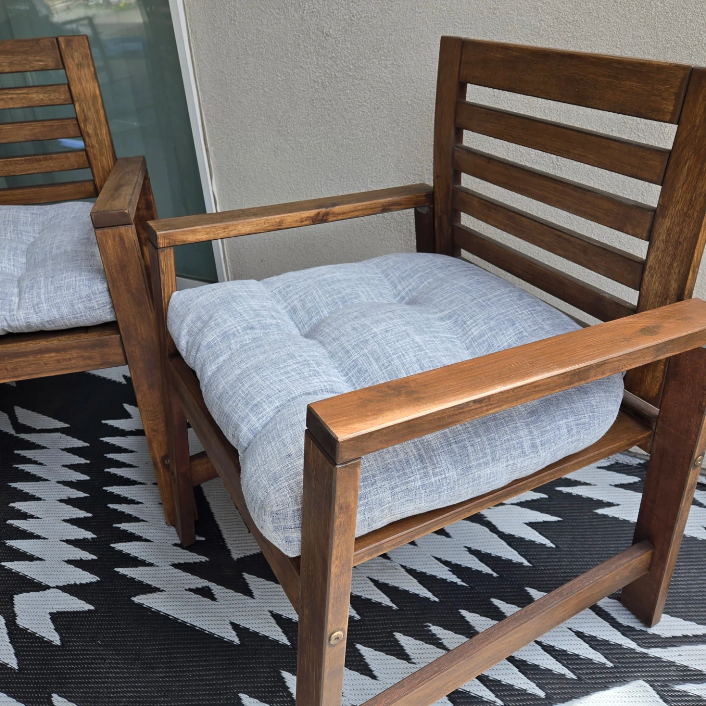 2 newly sanded and stained ikea applaro outdoor chairs w cushions